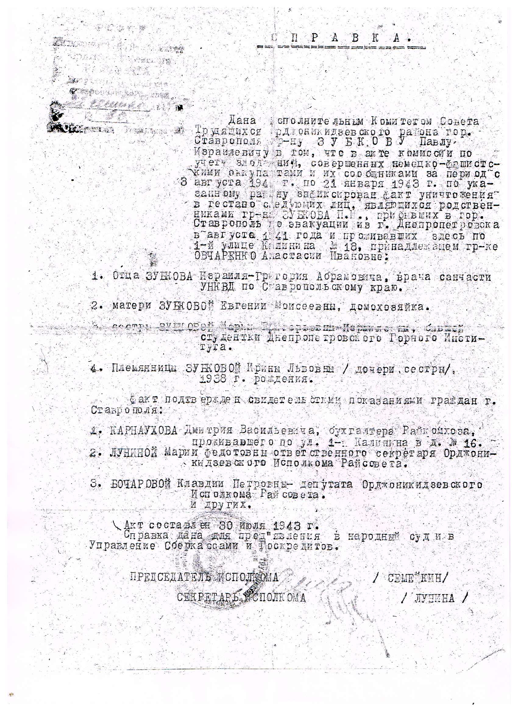 Zubkova גורדון אירינה 1939 Dnepropetrovsk, אוקראינה (ברה"מ) רשימת מפונים
