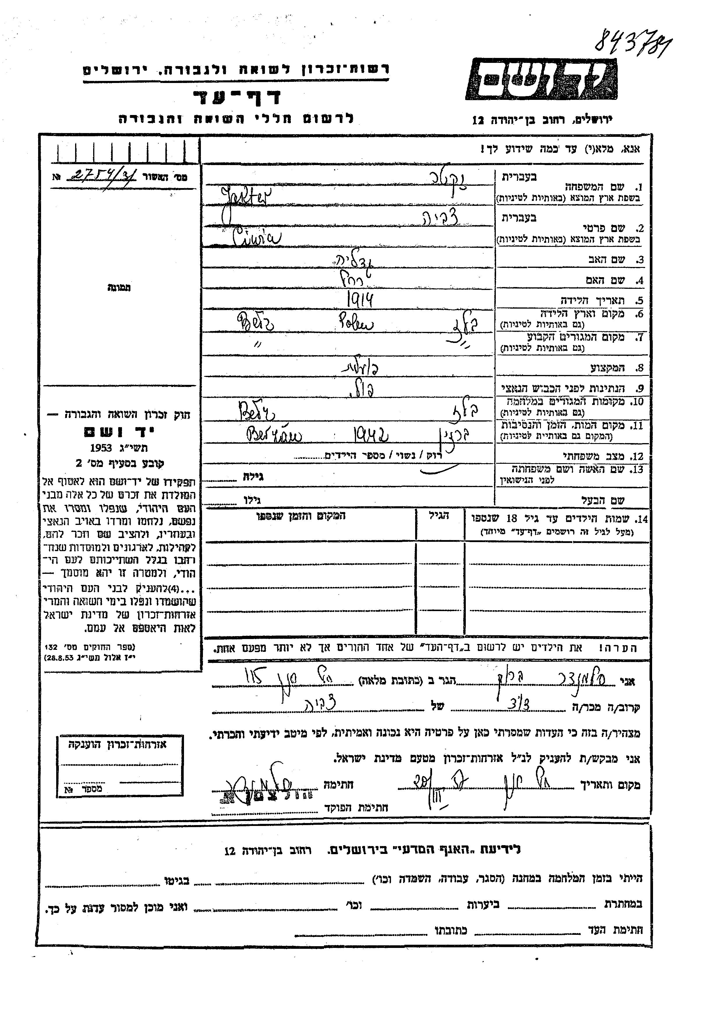 חיפוש שם מוסר דף העד. חיפוש לפי כל שם פרטי, כולל כינוי או שם חיבה