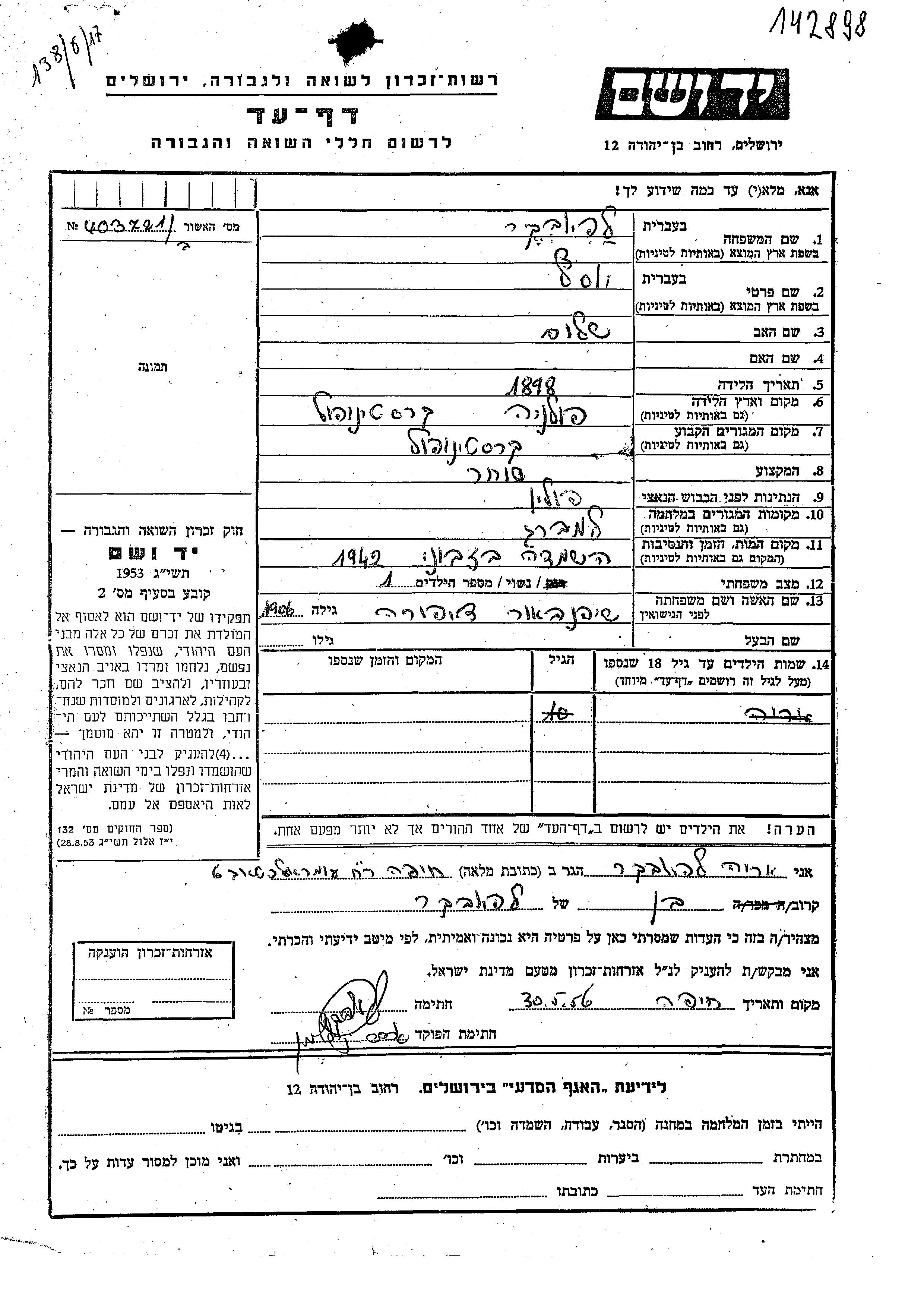 יד ושם - המפעל להנצחת השמות בדפי עד