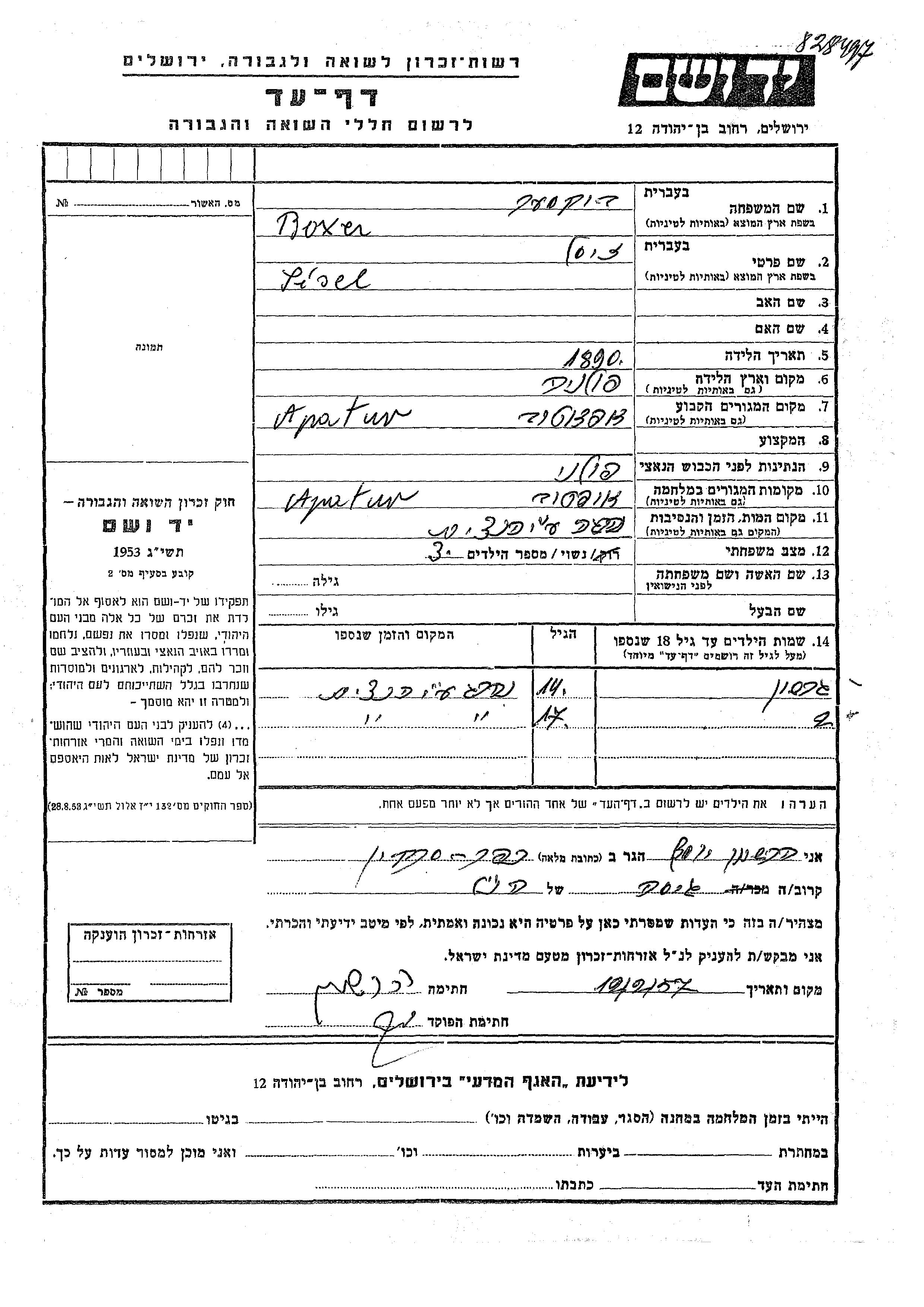 יד ושם - המפעל להנצחת השמות בדפי עד