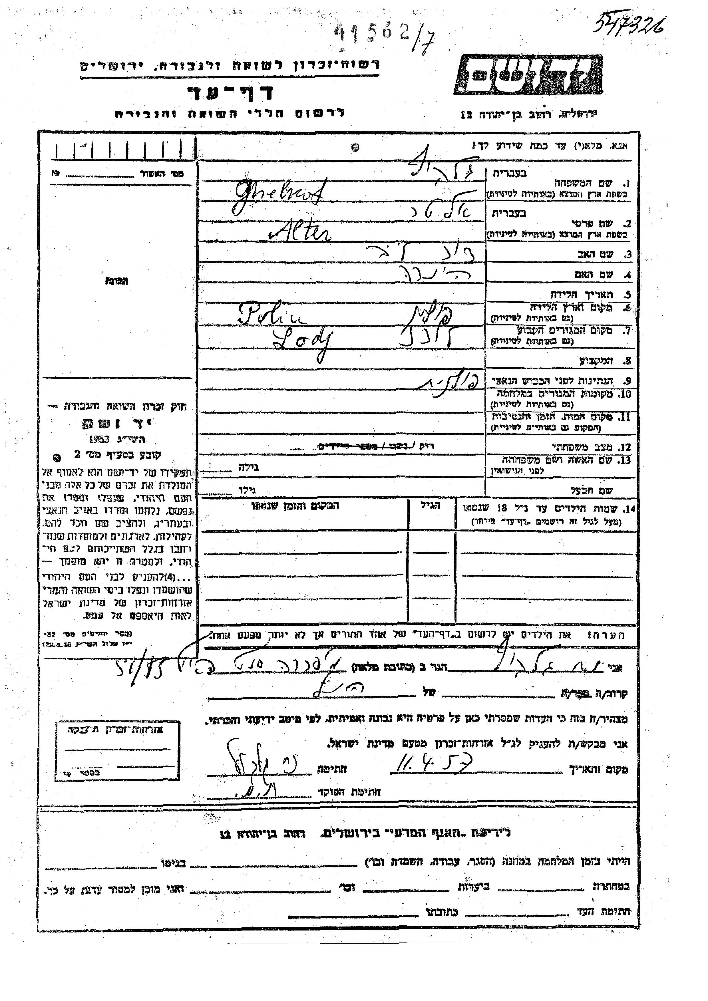 יד ושם - המפעל להנצחת השמות בדפי עד