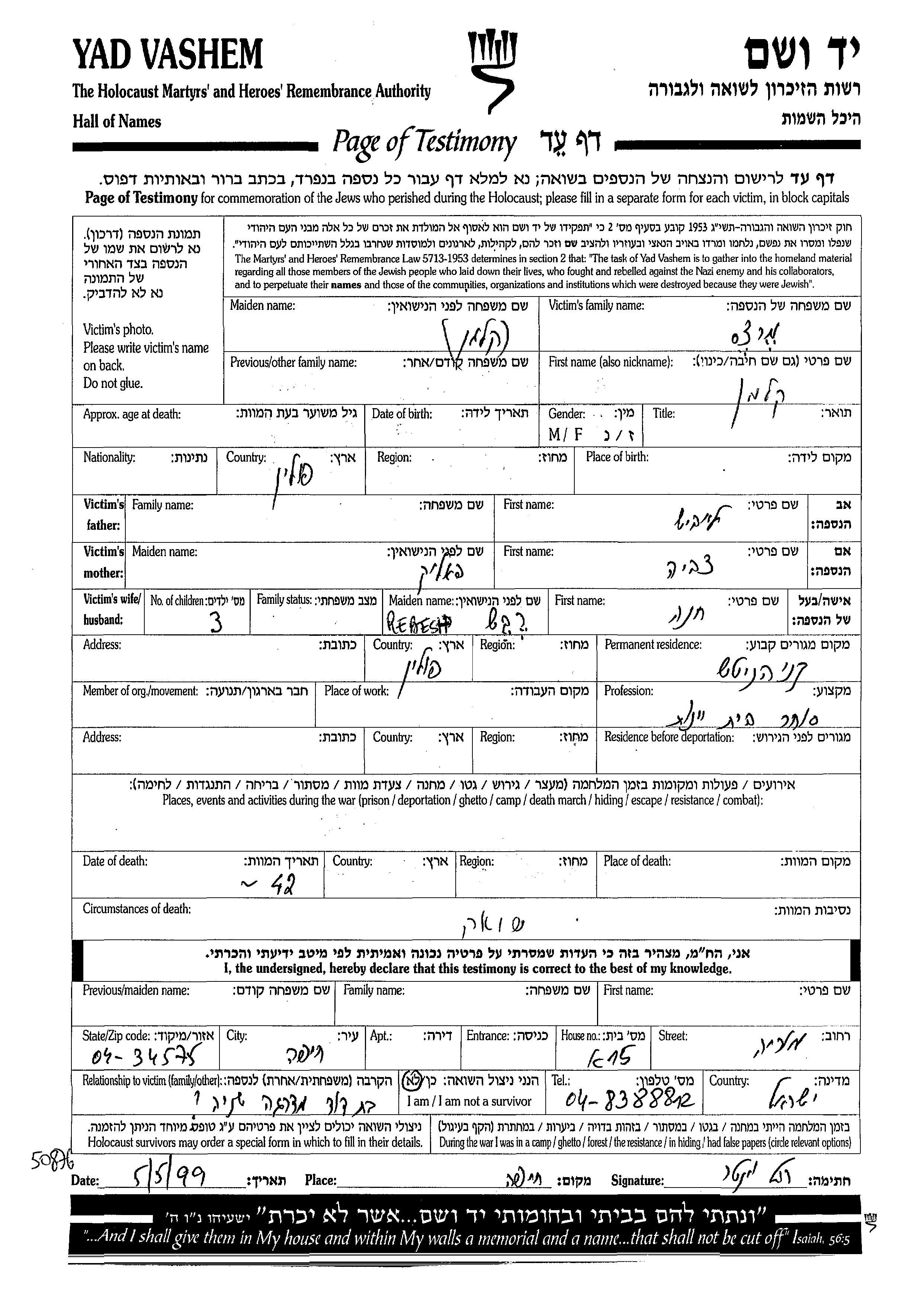 יד ושם - המפעל להנצחת השמות בדפי עד