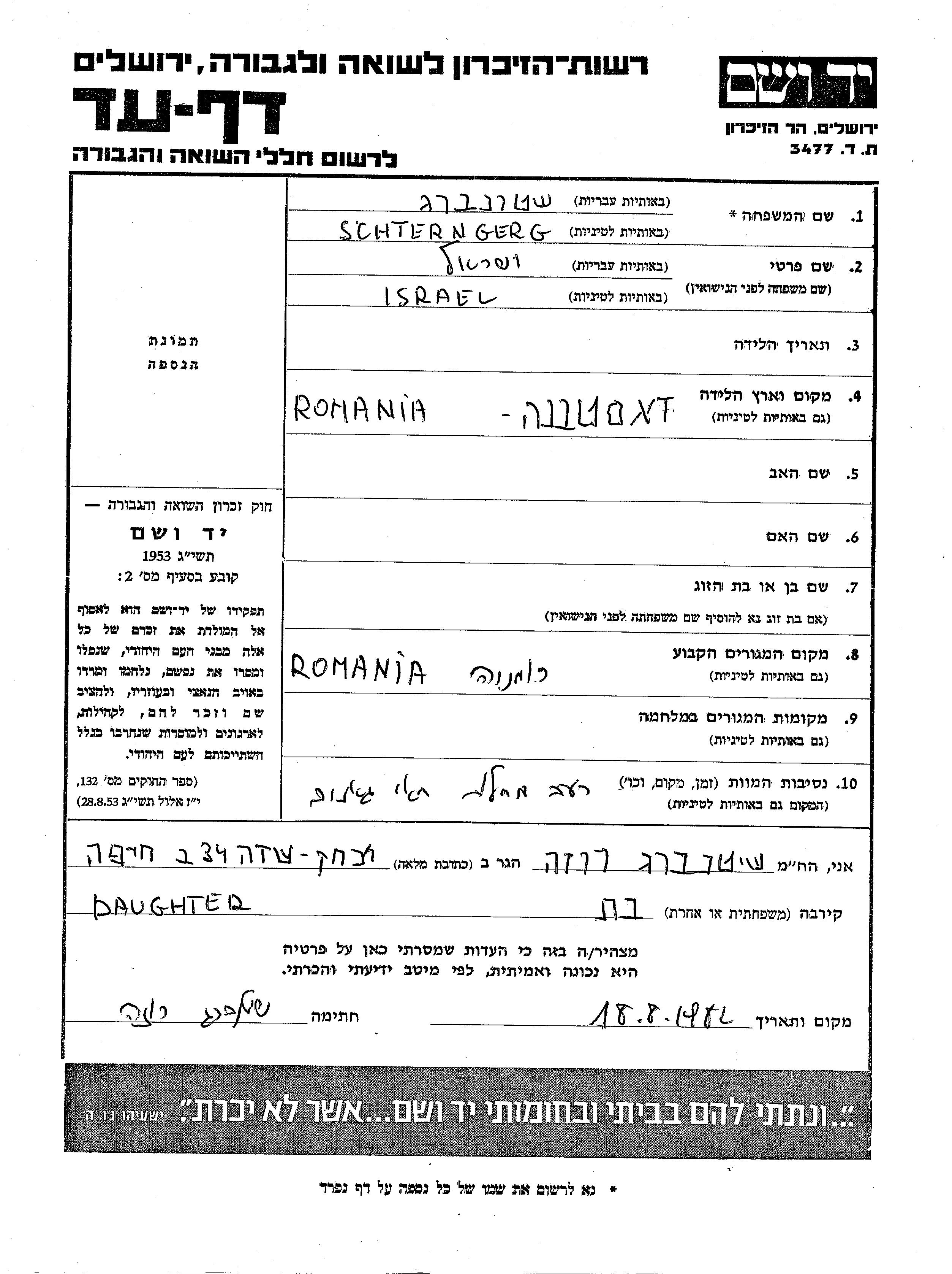 יד ושם - המפעל להנצחת השמות בדפי עד