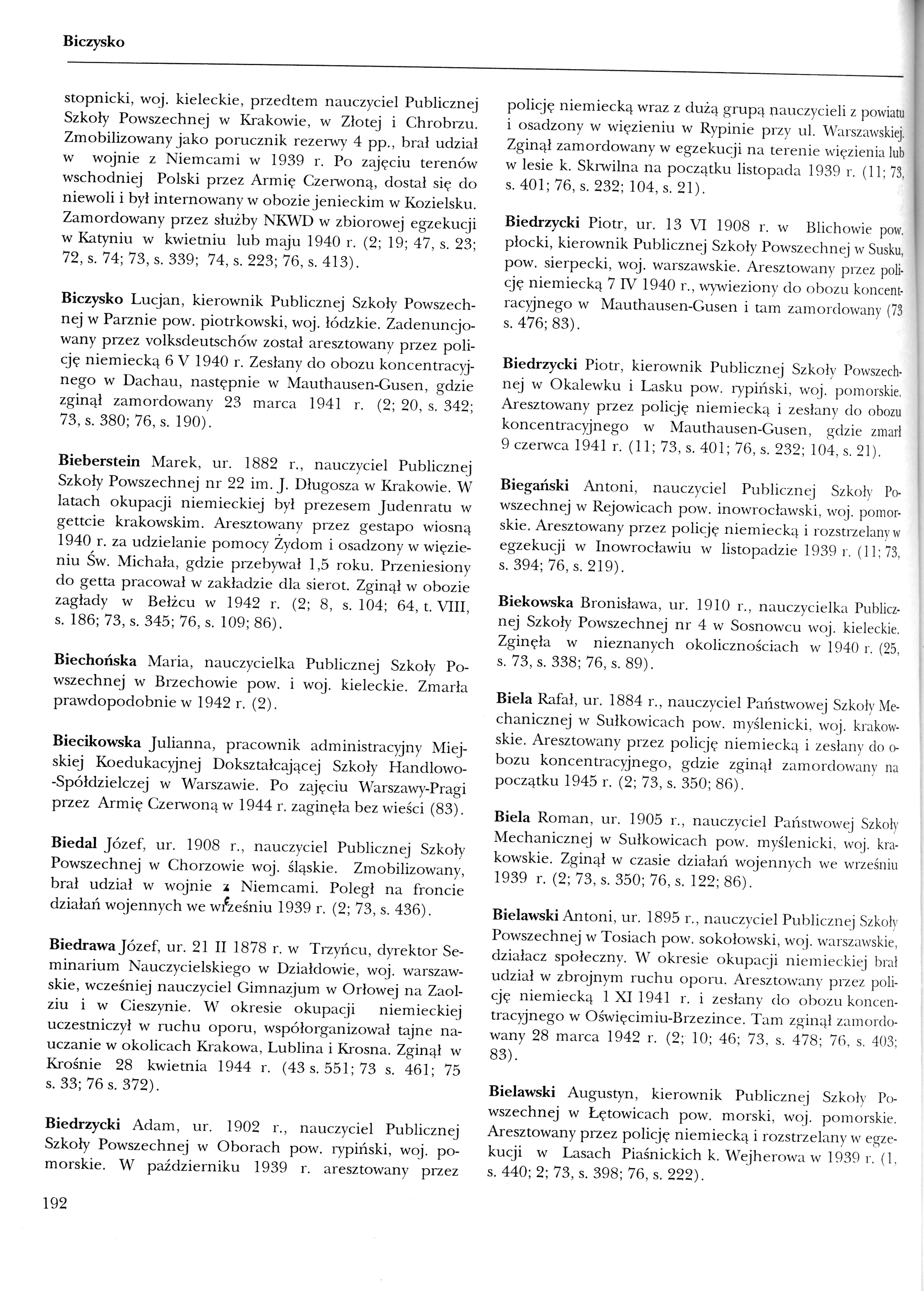 רשימה מתוך ספר זיכרון ובה שמות מורים ועובדי מערכת החינוך בפולין שניספו בתקופת השואה