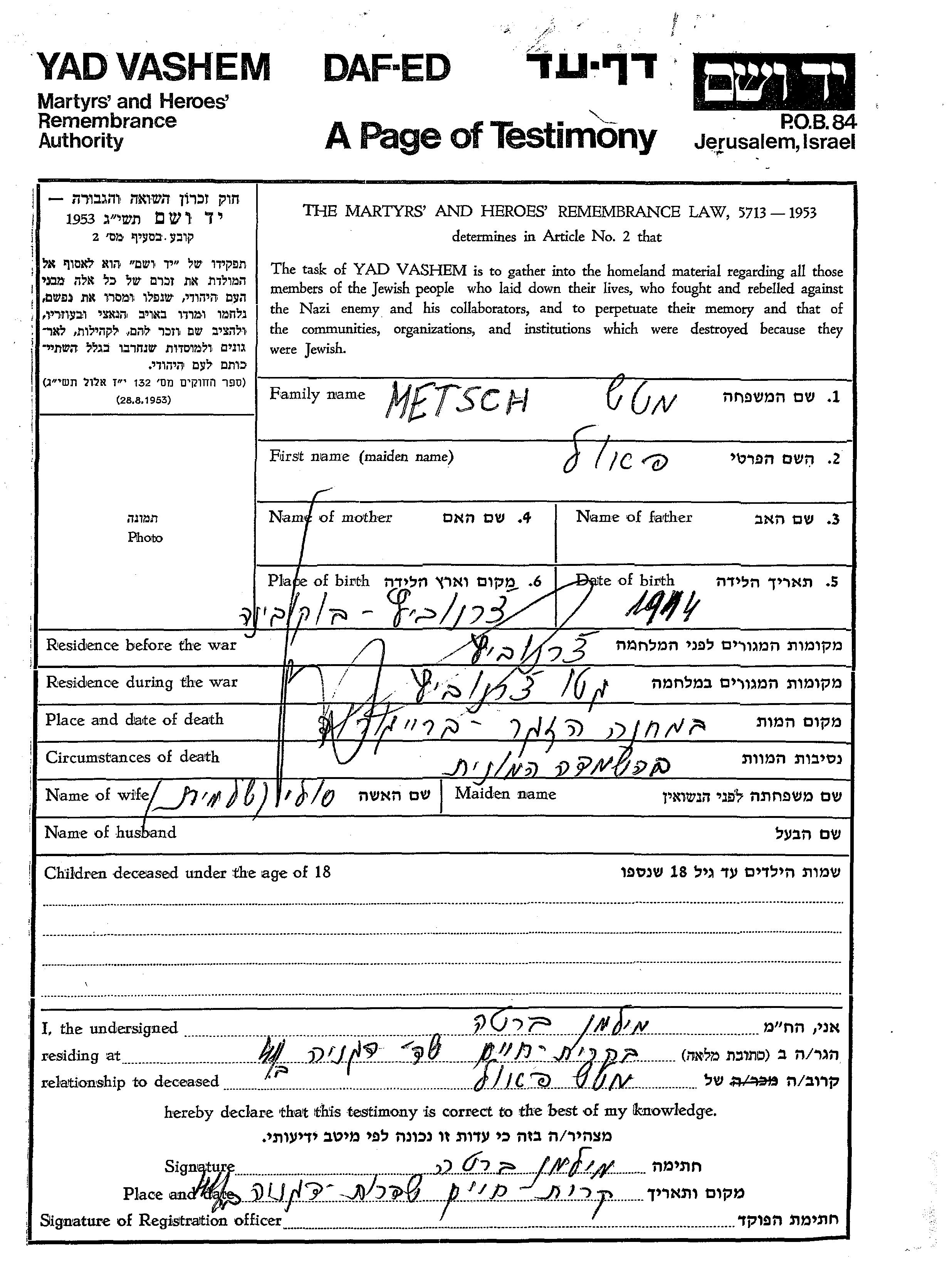 חיפוש שם מוסר דף העד. חיפוש לפי כל שם פרטי, כולל כינוי או שם חיבה
