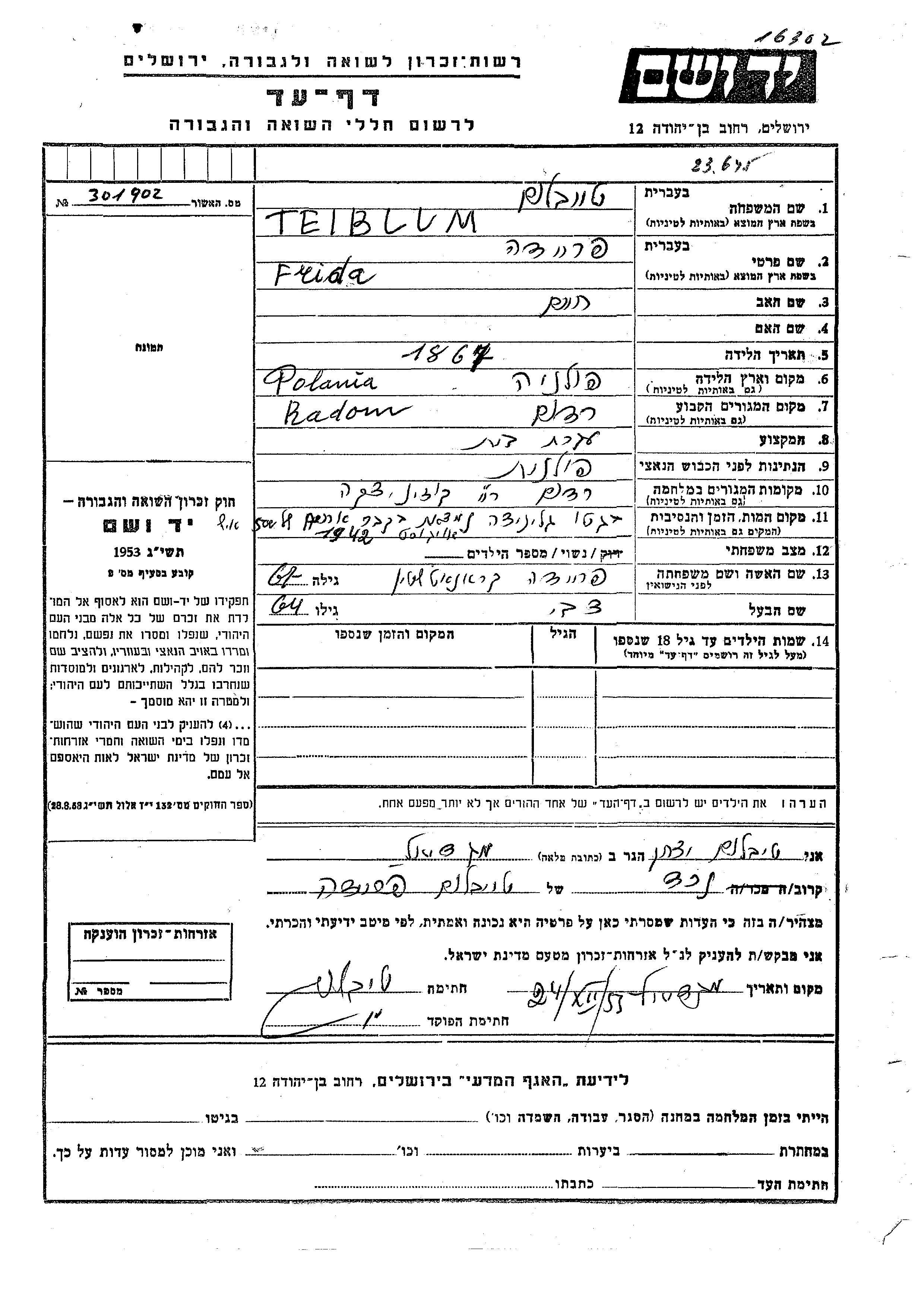 טייבלום פרידה פריידה 1867 Radom, פולין דף-עד