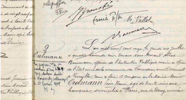 Oulmann Jean Albin Victor 1911 Paris, צרפת תעודת לידה