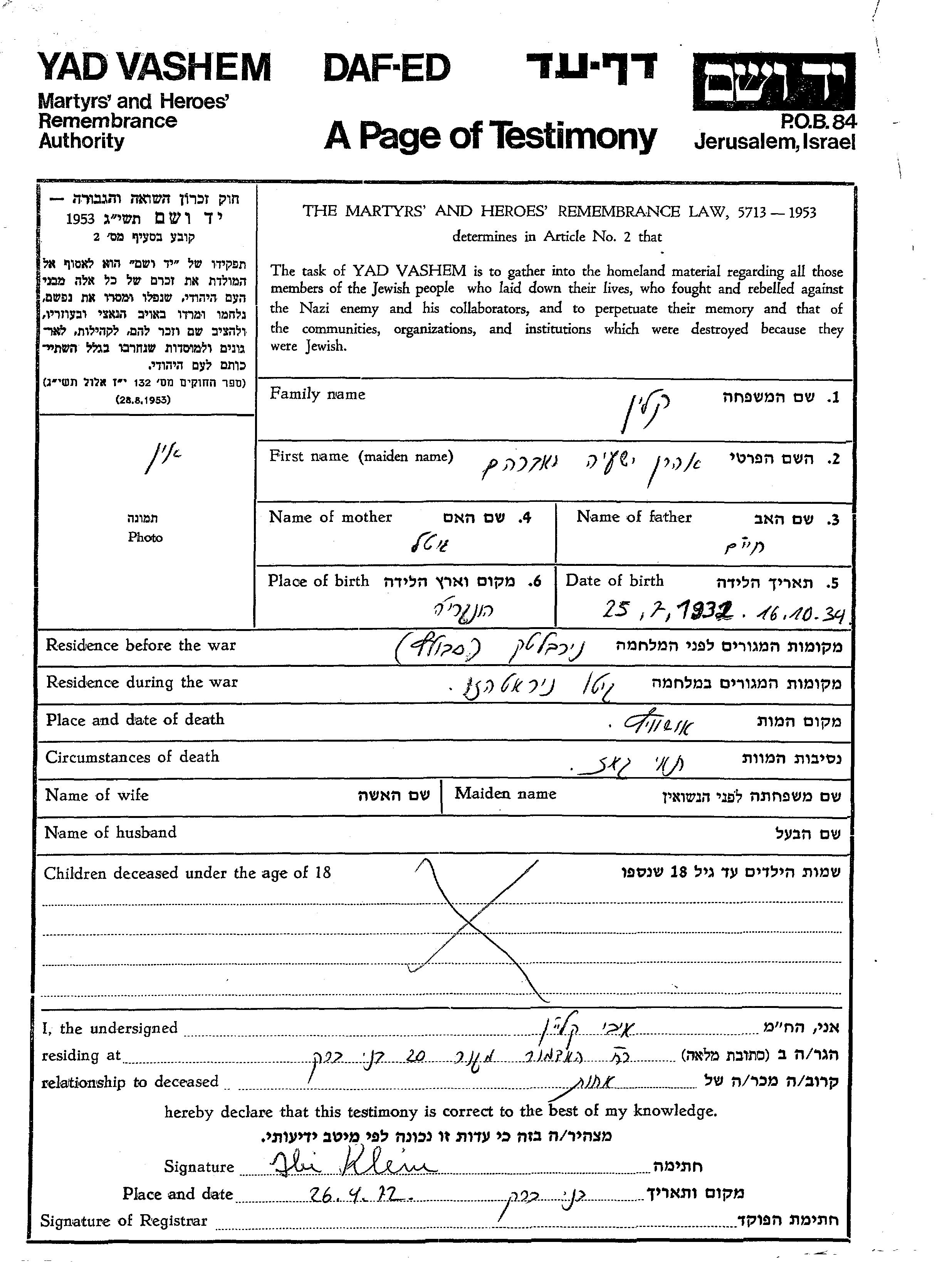 יד ושם - המפעל להנצחת השמות בדפי עד