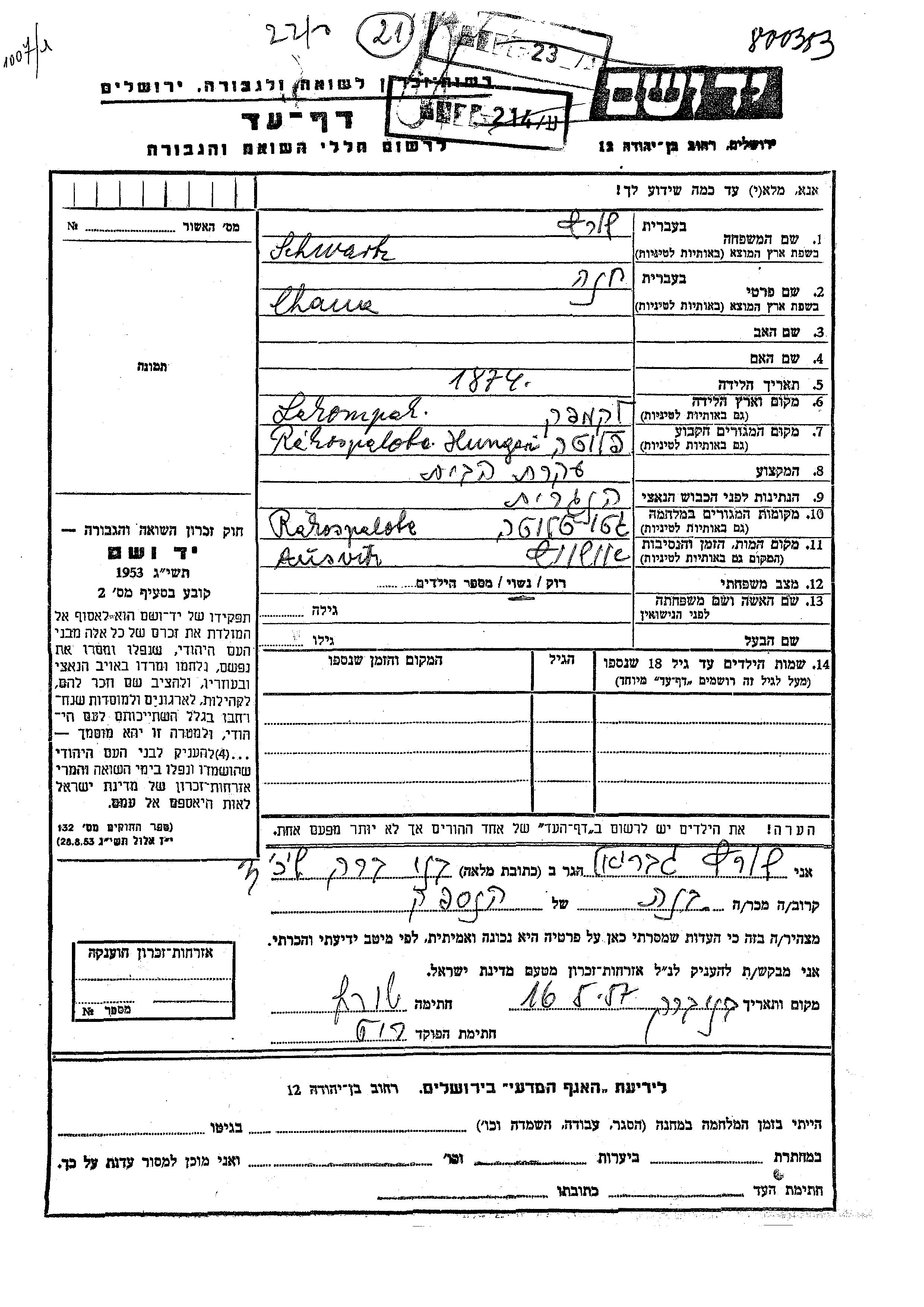 חיפוש שם מוסר דף העד. חיפוש לפי שם משפחה; כולל גם תוצאות חיפוש לפי שם הנעורים של אישה לפני הנישואין