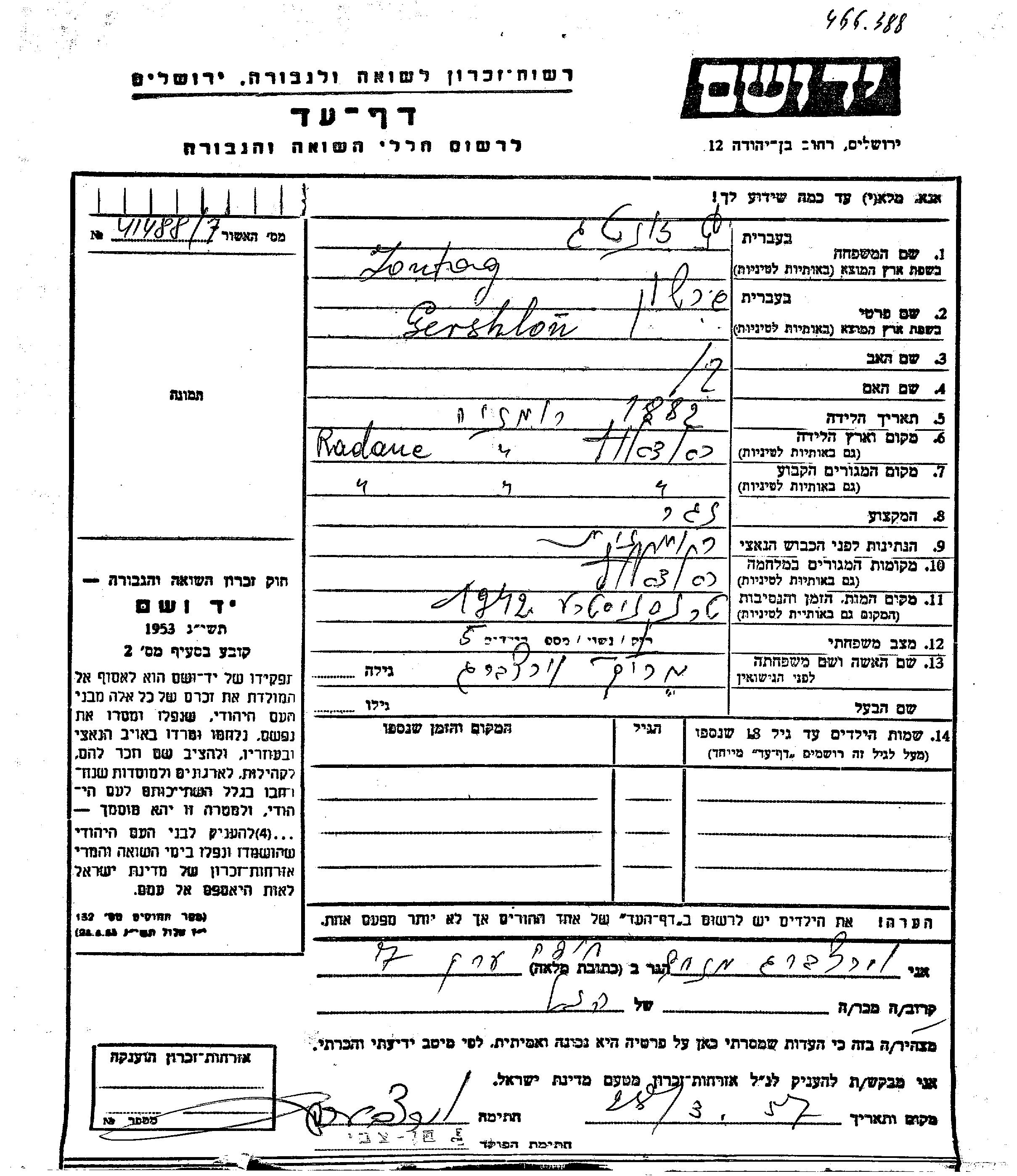 חיפוש שם מוסר דף העד. חיפוש לפי כל שם פרטי, כולל כינוי או שם חיבה