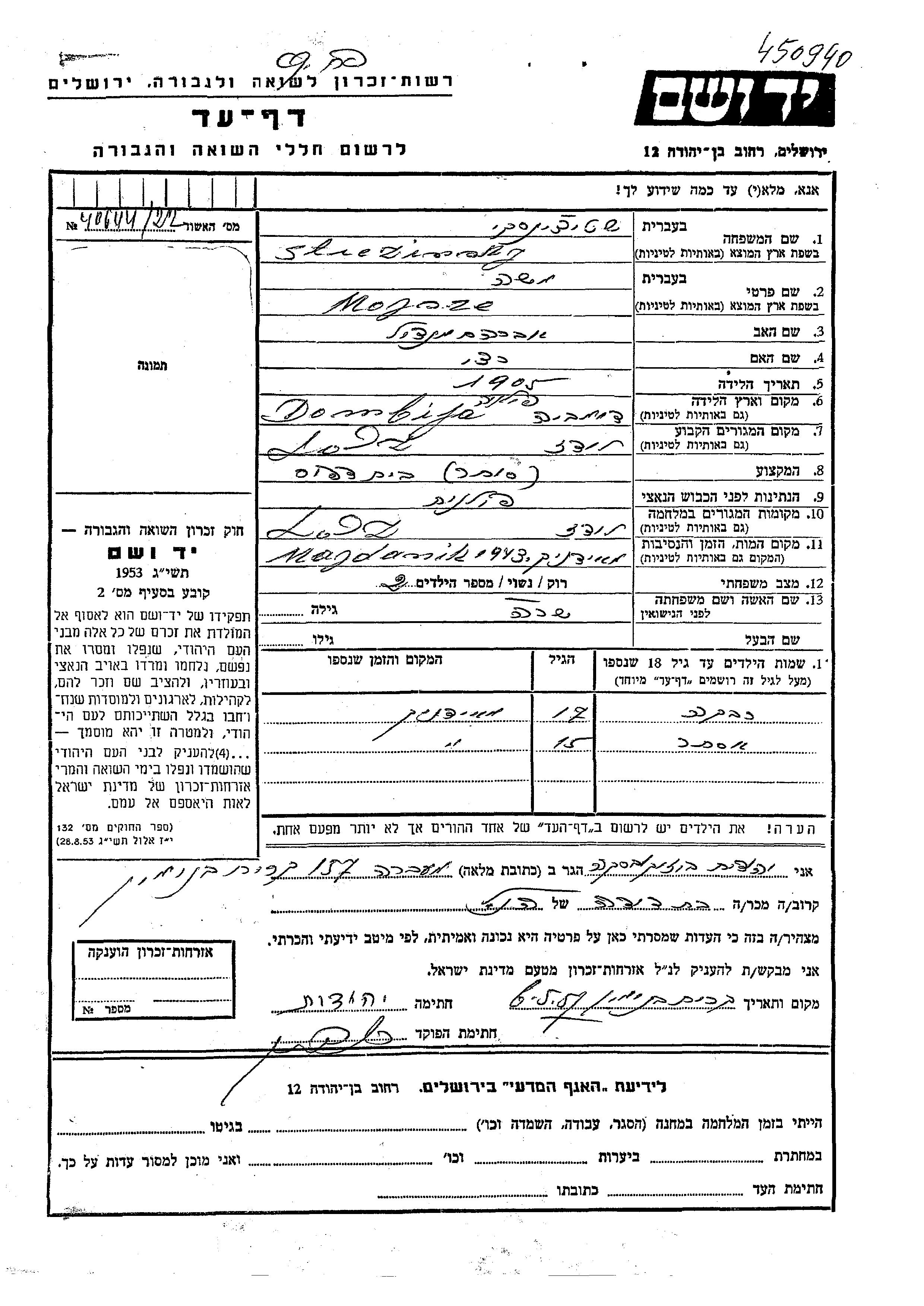 יד ושם - המפעל להנצחת השמות בדפי עד