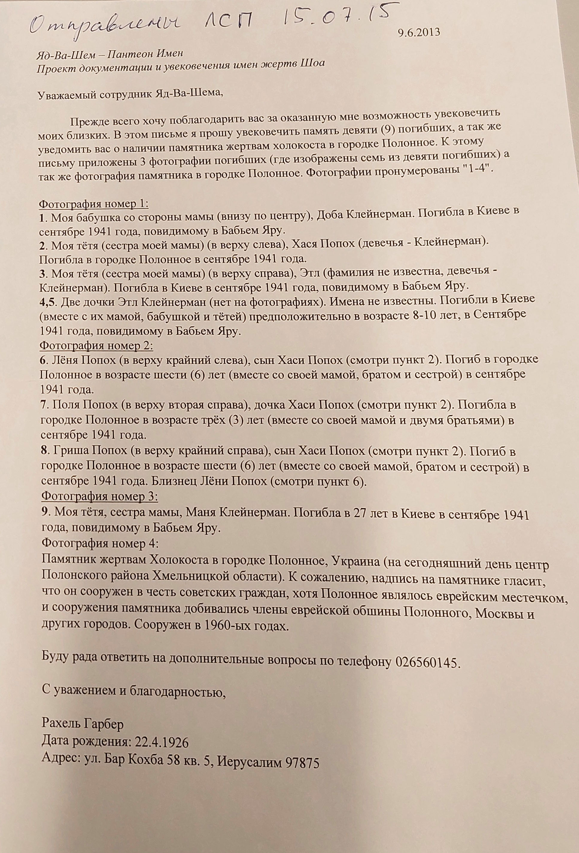 חסיה נרצחה בשואה. מקום המוות: Polonnoye שבאוקראינה (ברה"מ) בשנת 09/1941.