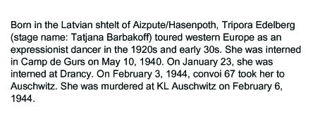 היא נרצחה בשואה. מקום המוות: Auschwitz שבפולין בשנת 06/02/1944.