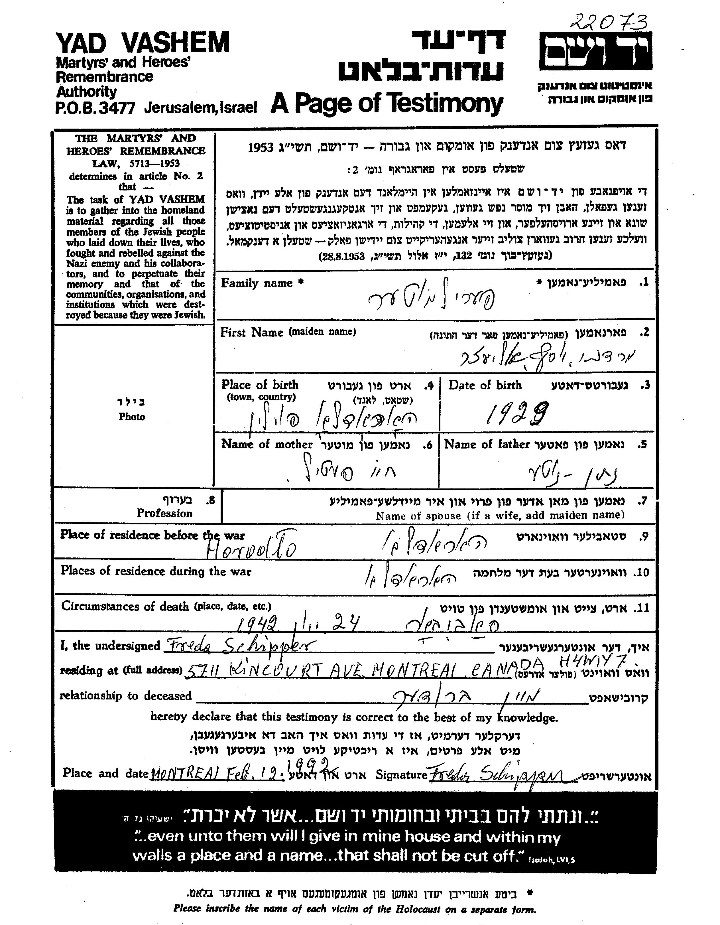 יד ושם - המפעל להנצחת השמות בדפי עד