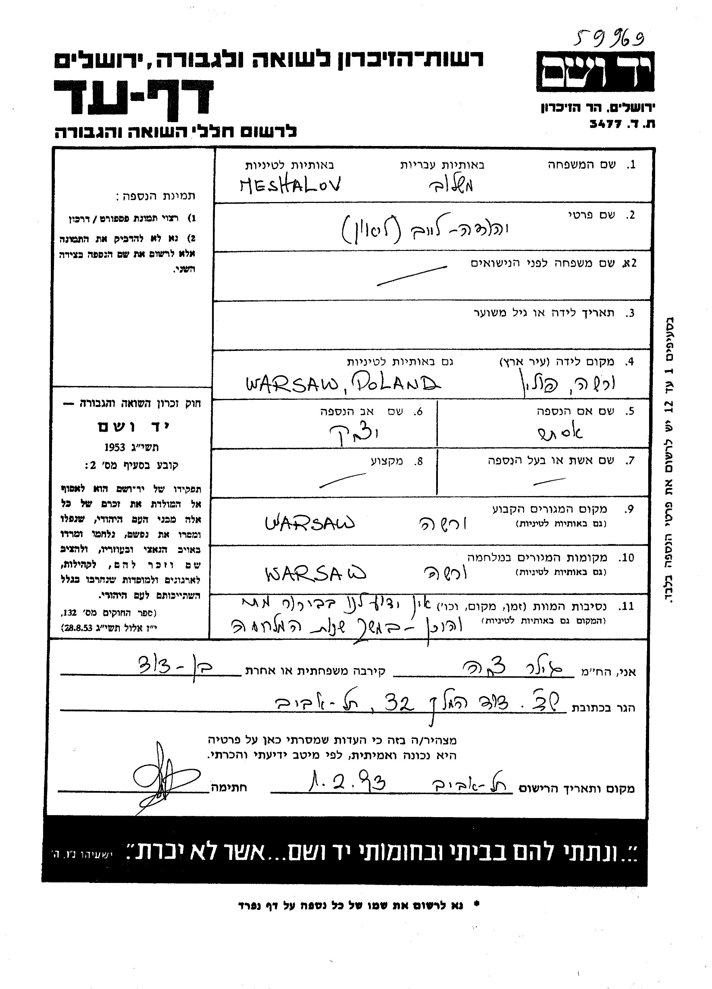יד ושם - המפעל להנצחת השמות בדפי עד
