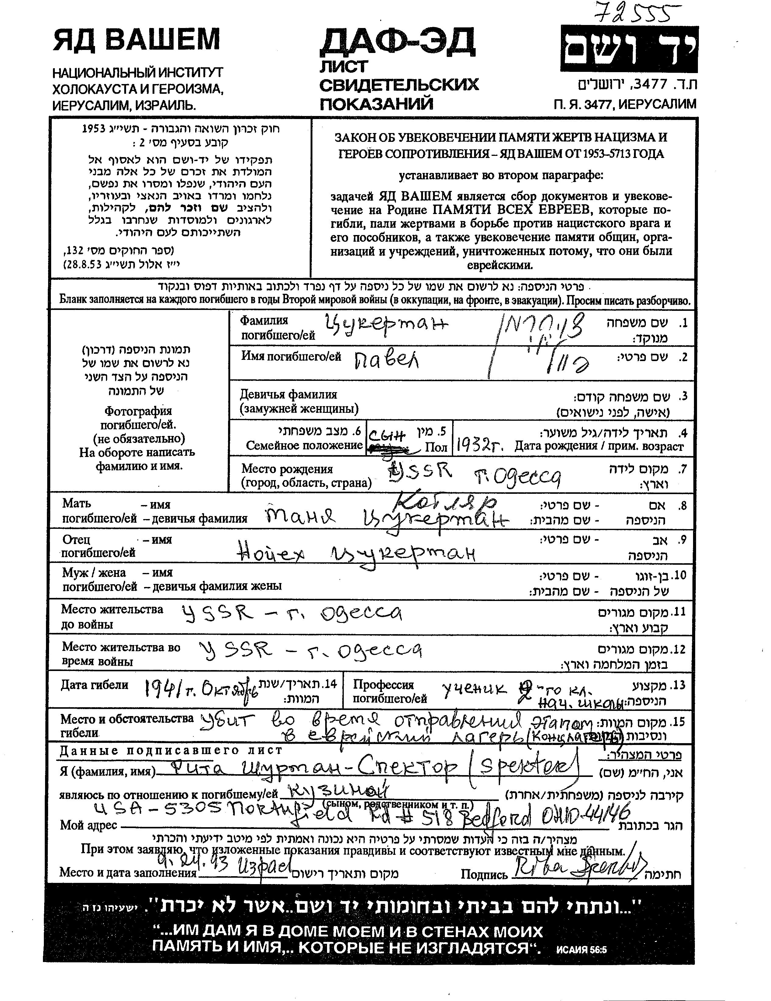 יד ושם - המפעל להנצחת השמות בדפי עד
