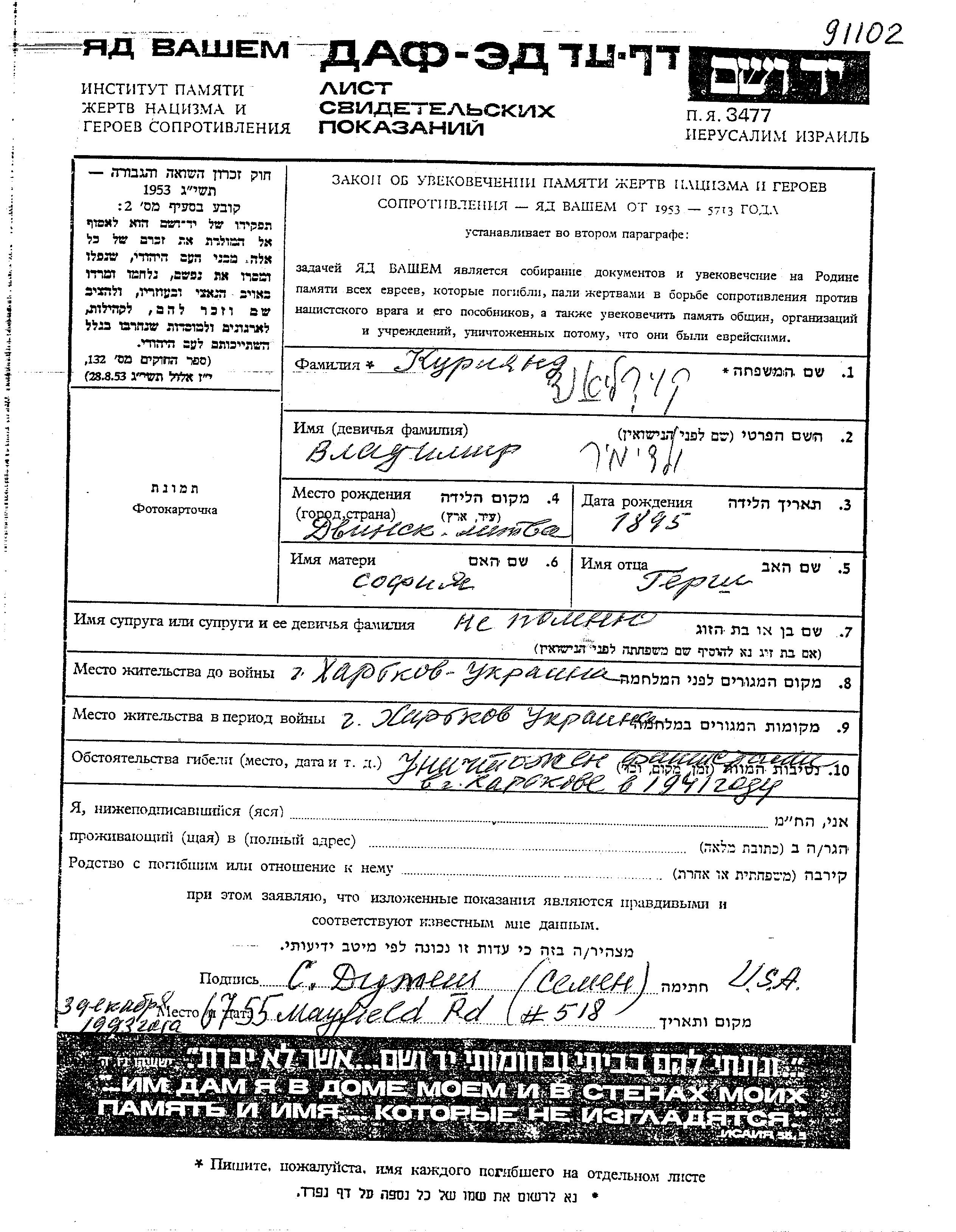 Kurlyand ולדימיר 1895 Kharkov, אוקראינה (ברה"מ) דף-עד