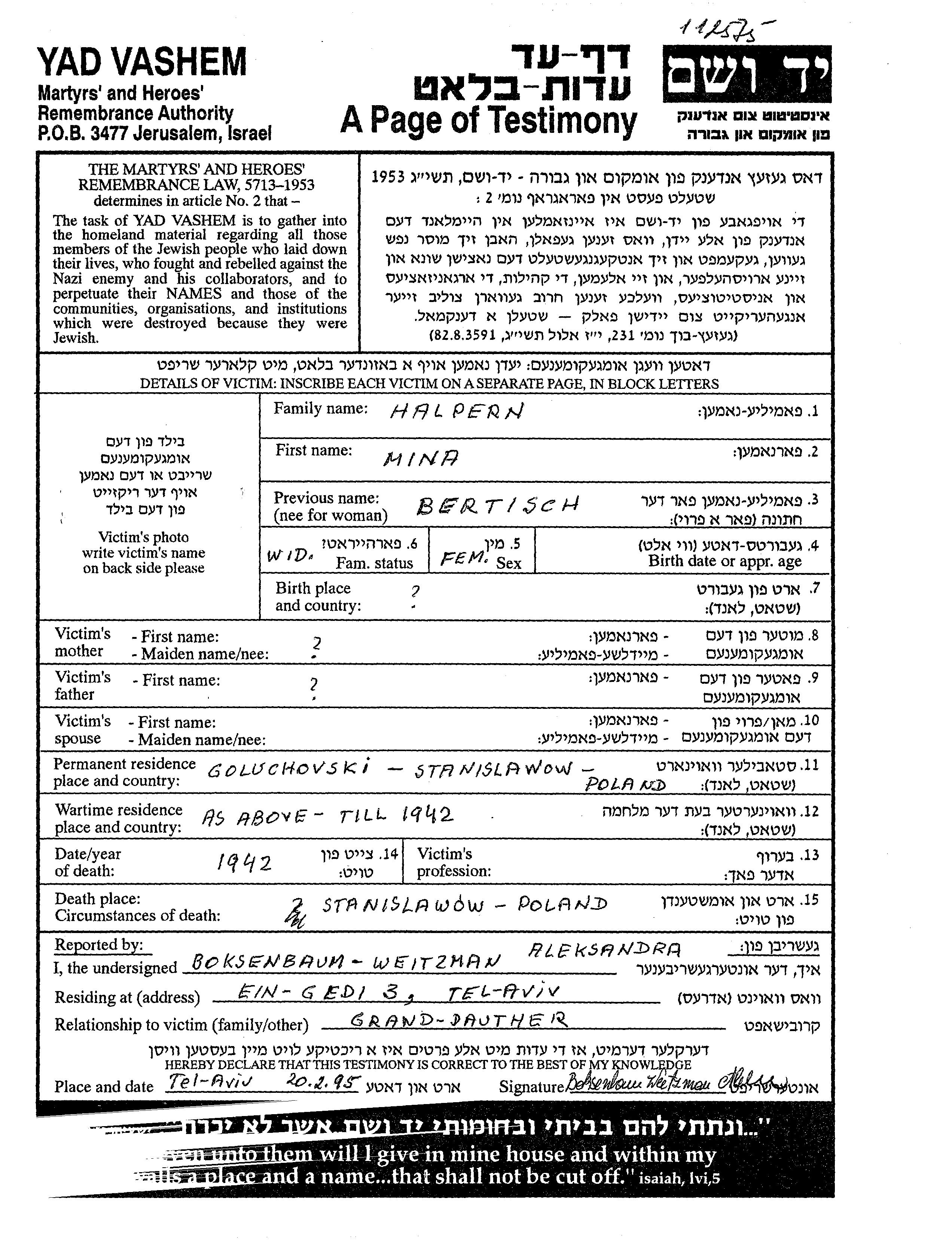 חיפוש שם מוסר דף העד. חיפוש לפי כל שם פרטי, כולל כינוי או שם חיבה