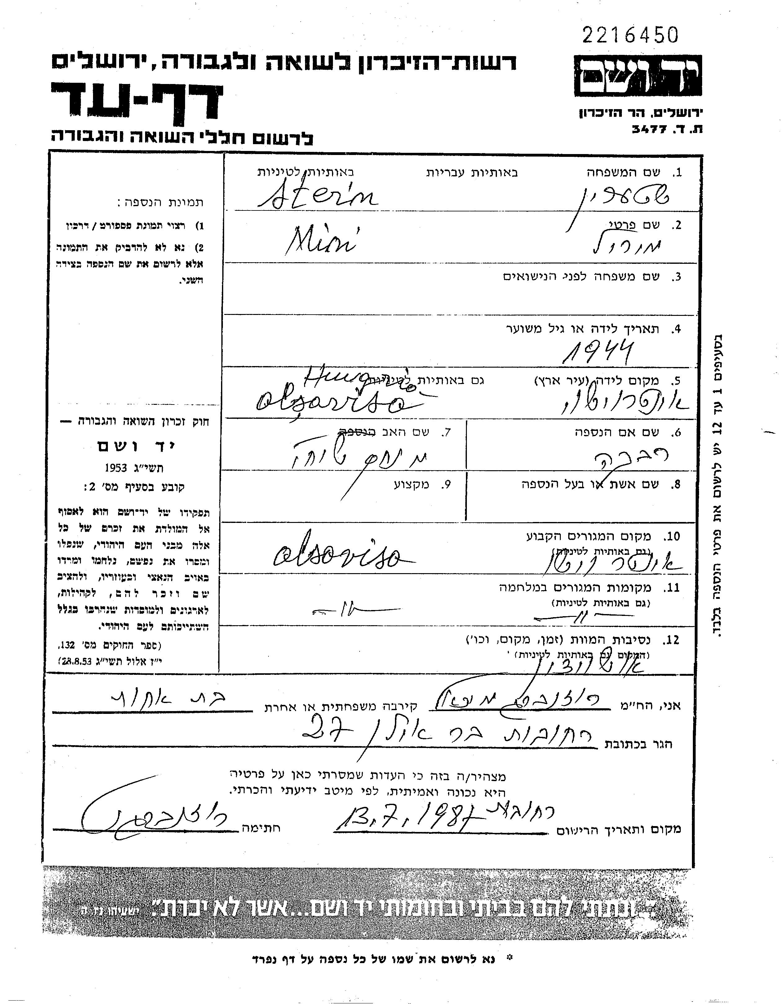 יד ושם - המפעל להנצחת השמות בדפי עד