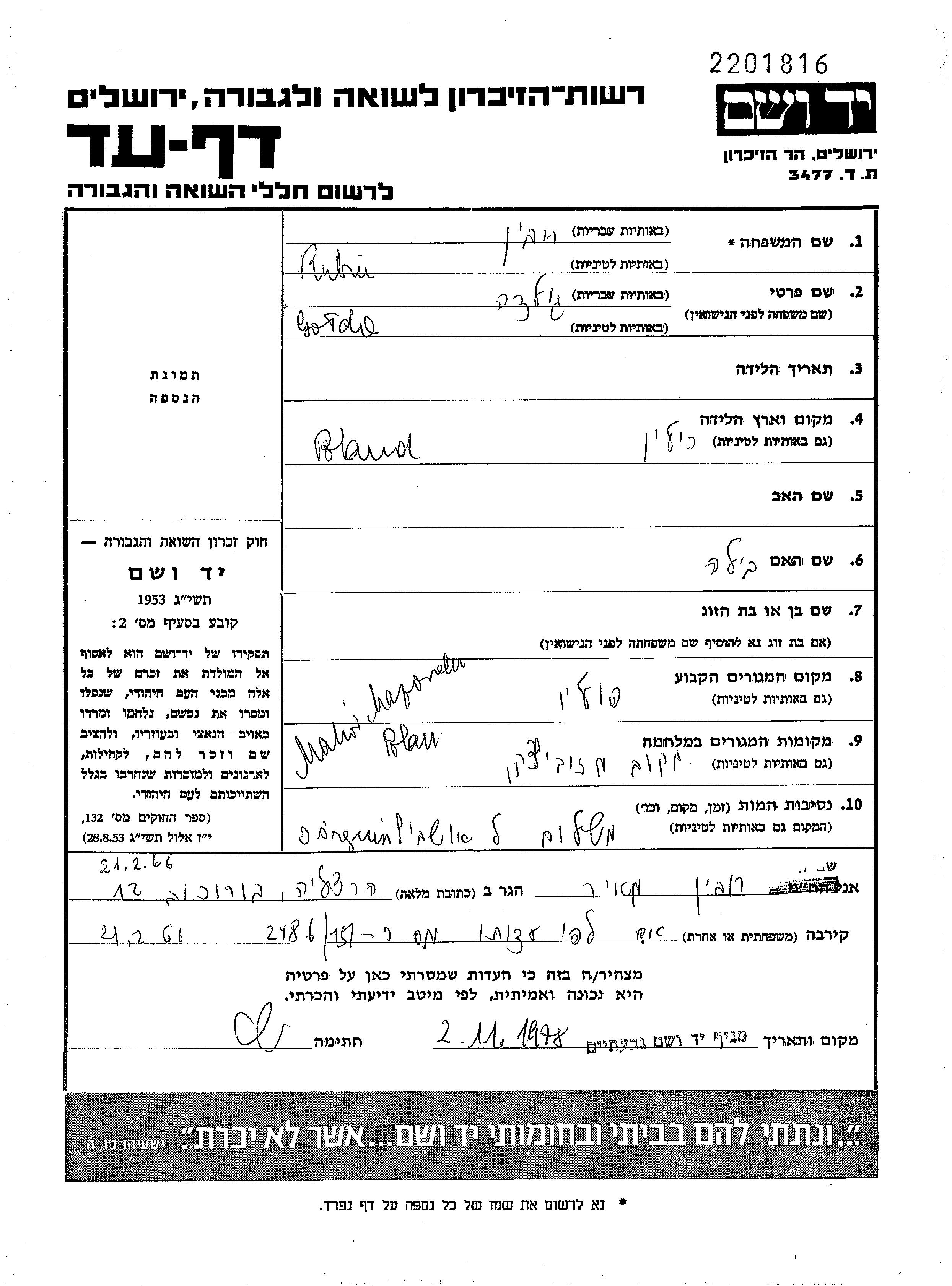 עיר/כפר, גטו/מחנה או אתר רצח או מחוז/אזור או מדינה. שם מקום ניתן לחפש רק בא-ב לטיני.