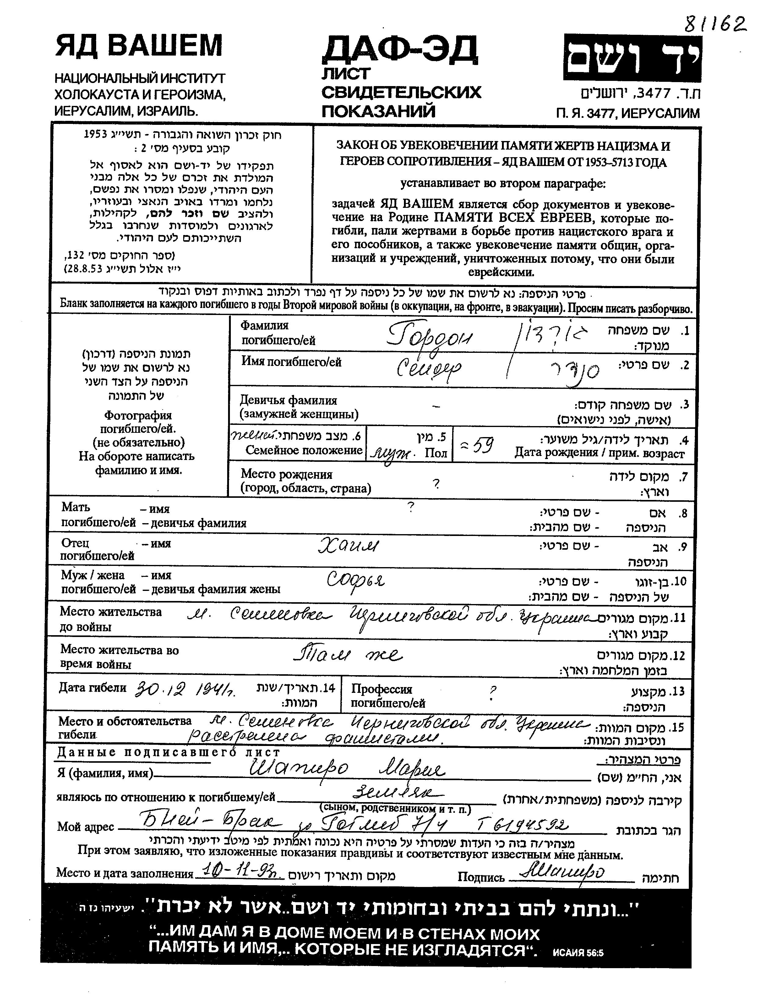 חיפוש שם מוסר דף העד. חיפוש לפי כל שם פרטי, כולל כינוי או שם חיבה