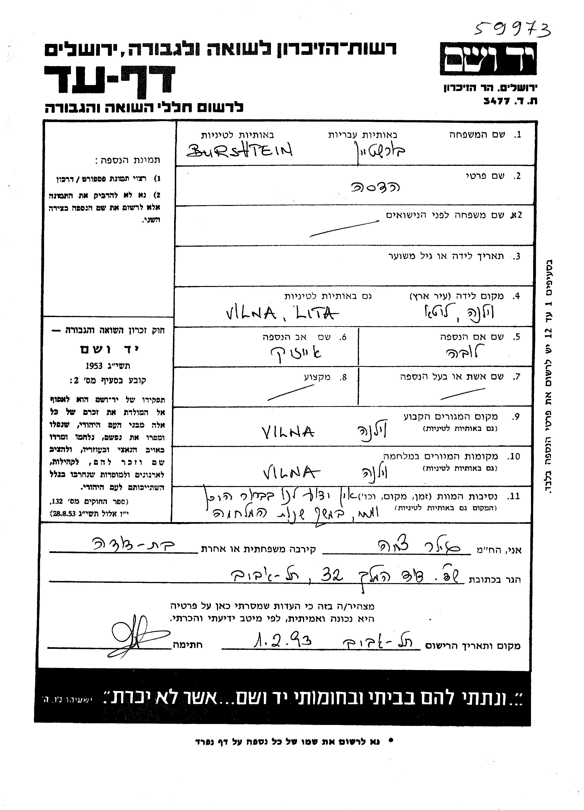בורשטיין הדסה Wilno, פולין דף-עד
