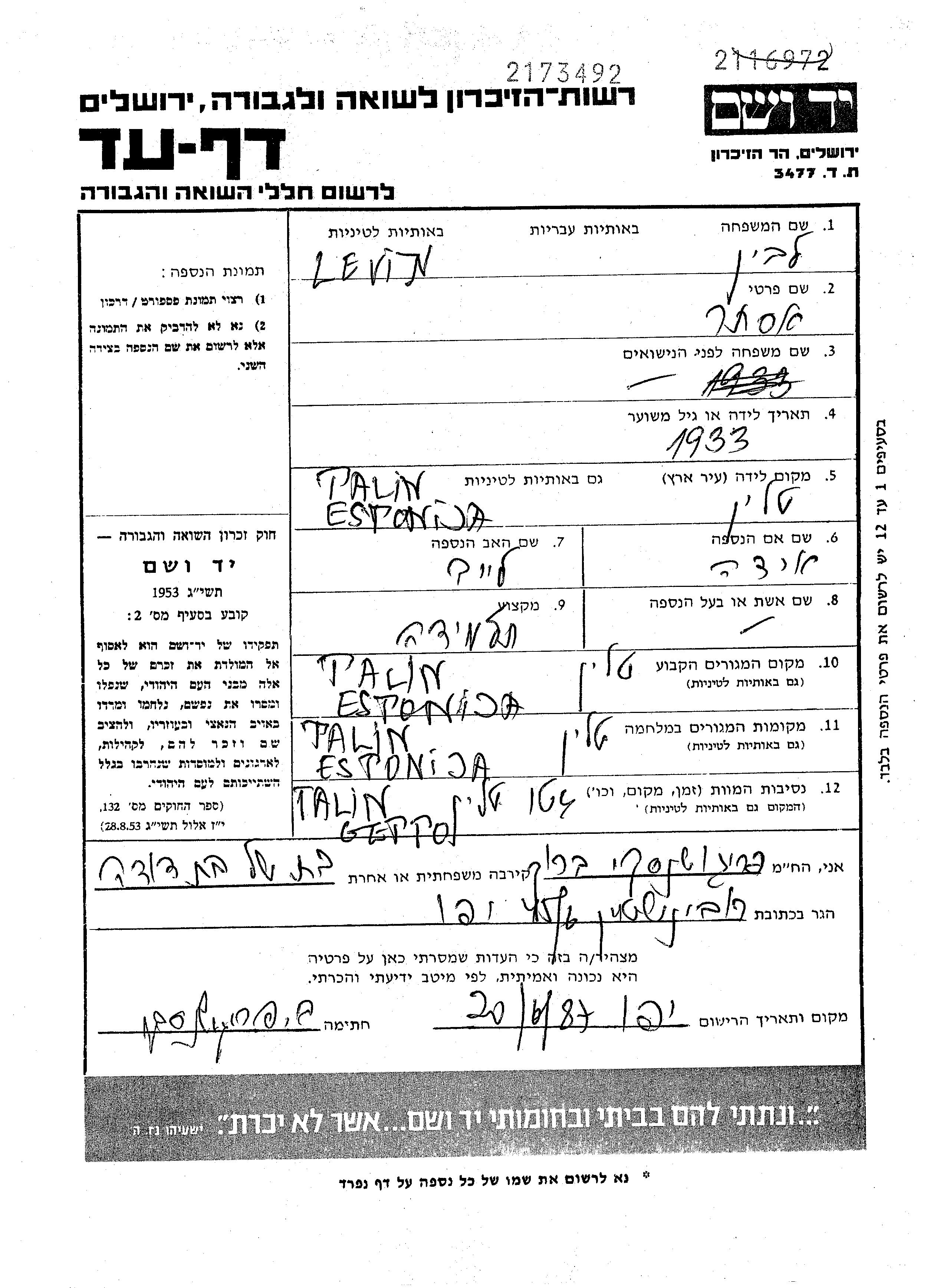 יד ושם - המפעל להנצחת השמות בדפי עד