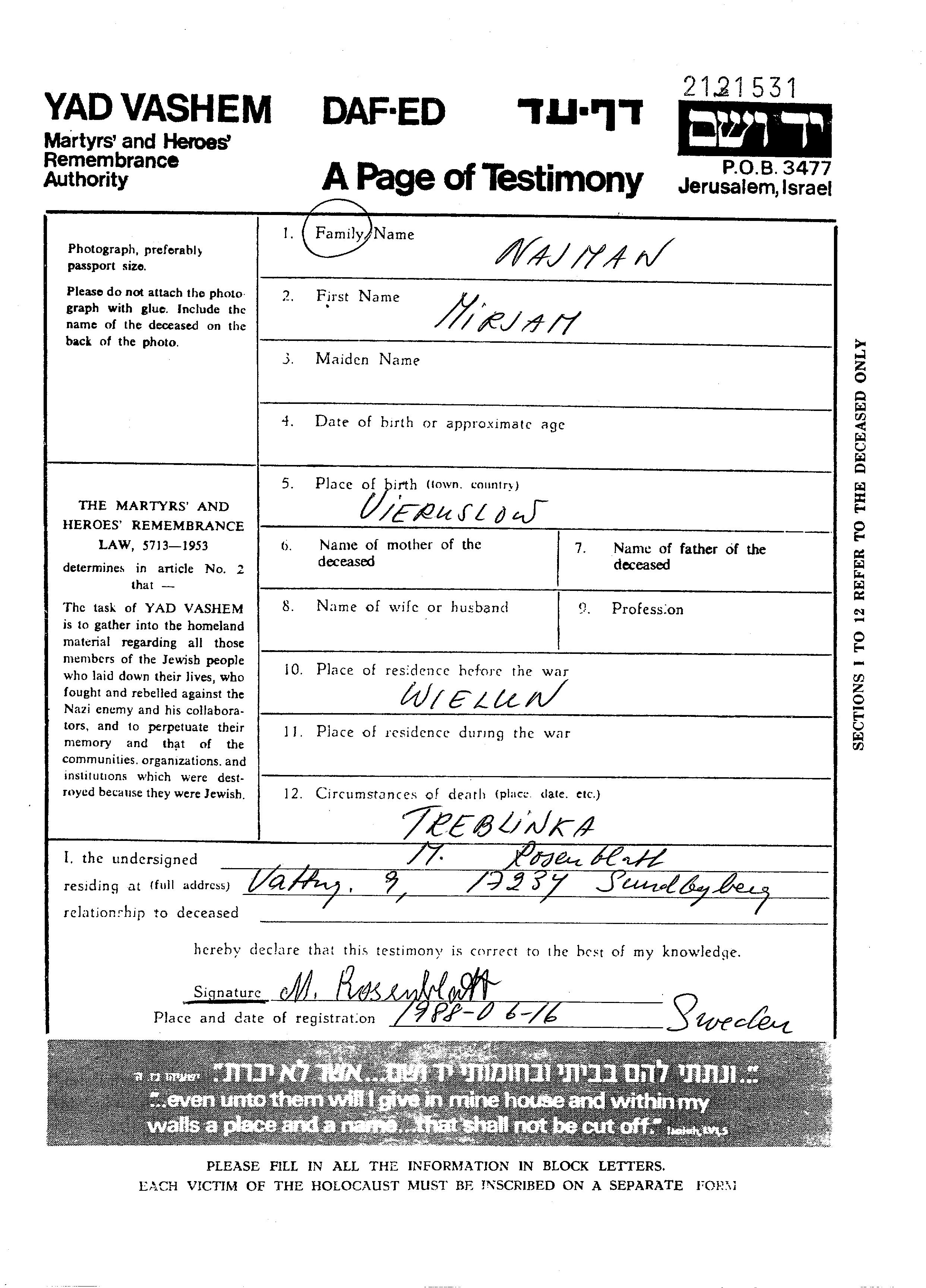 חיפוש שם מוסר דף העד. חיפוש לפי כל שם פרטי, כולל כינוי או שם חיבה
