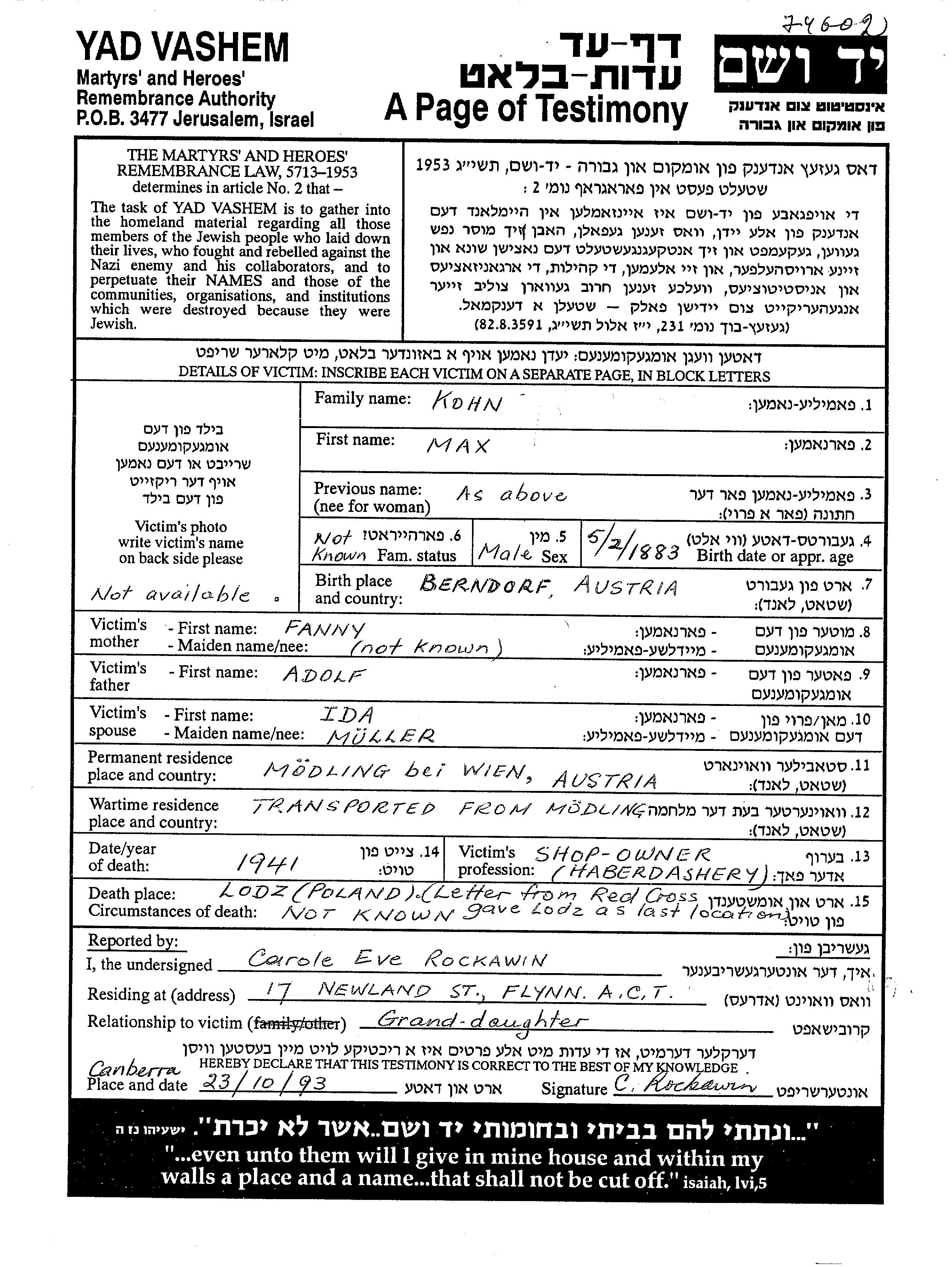 Kohn מקס 1883 Mödling, אוסטריה דף-עד