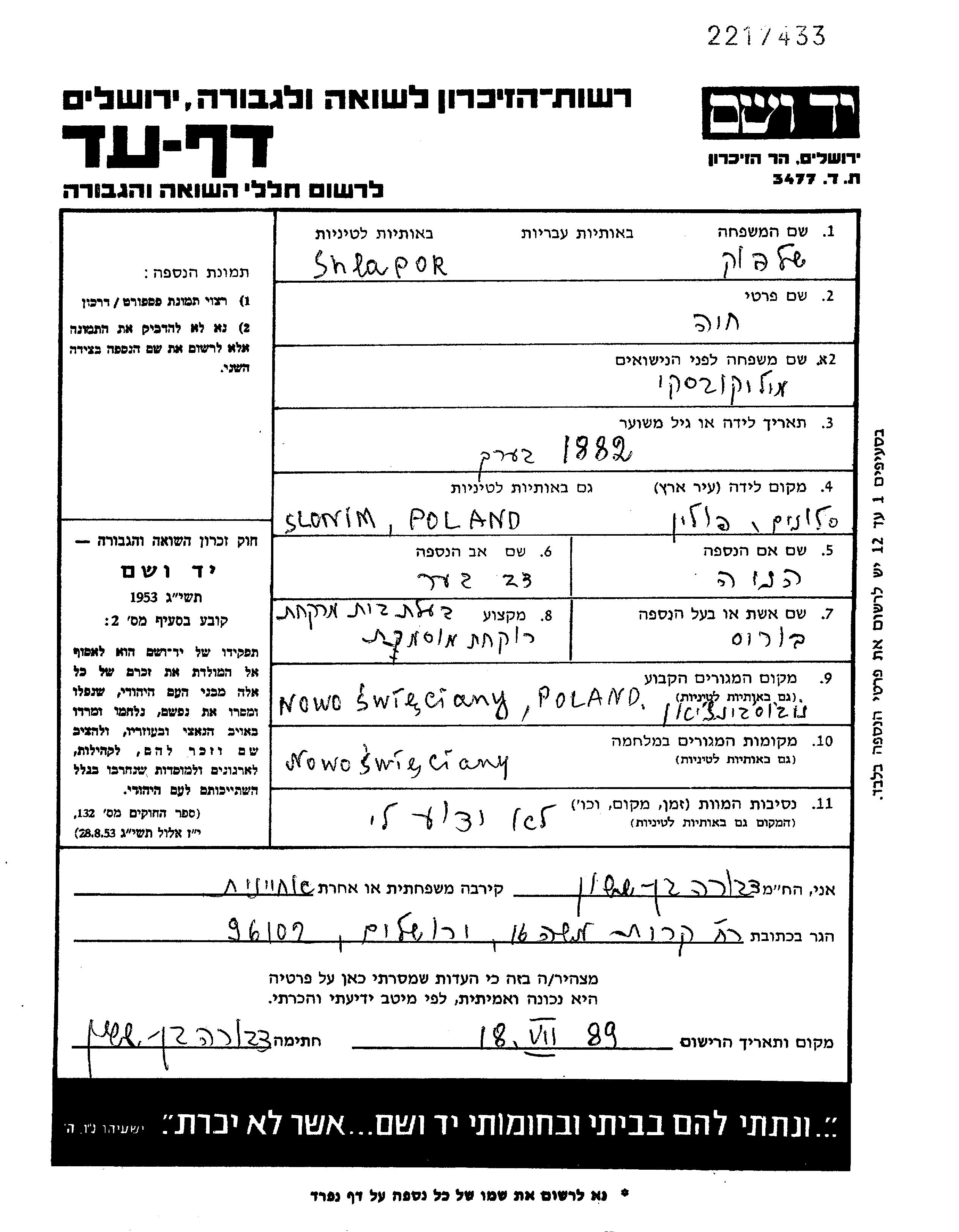 שלפוק חיה Nowo Swieciany, פולין דף-עד