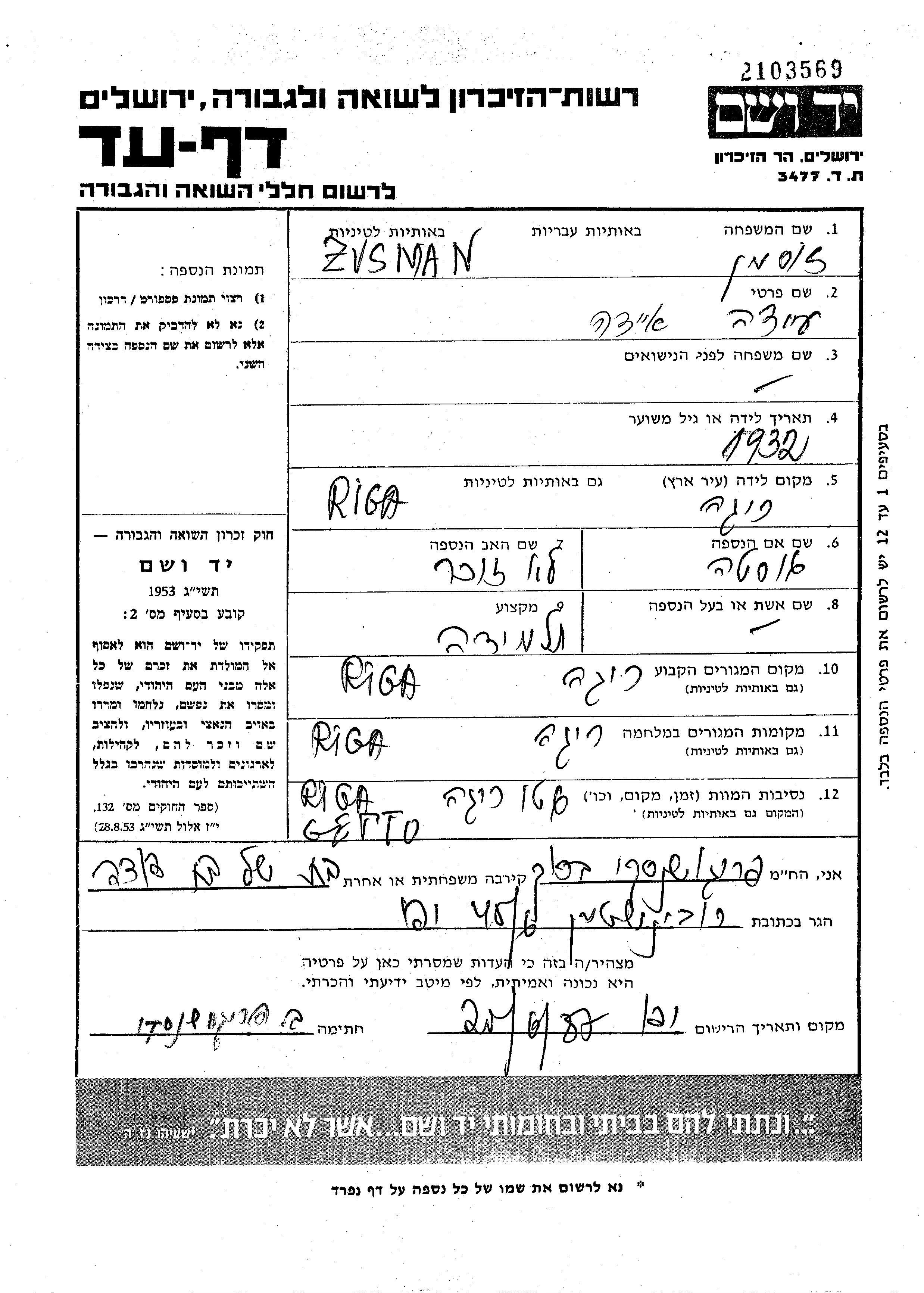 זוסמן Eida Riga, לטביה דף-עד