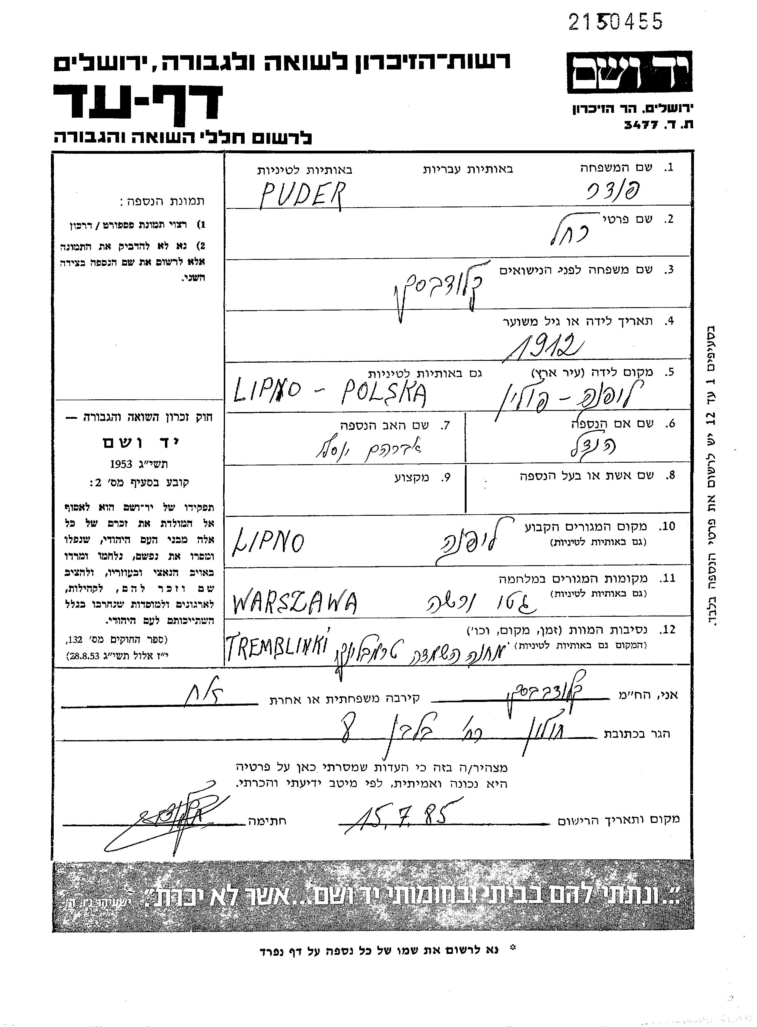 יד ושם - המפעל להנצחת השמות בדפי עד