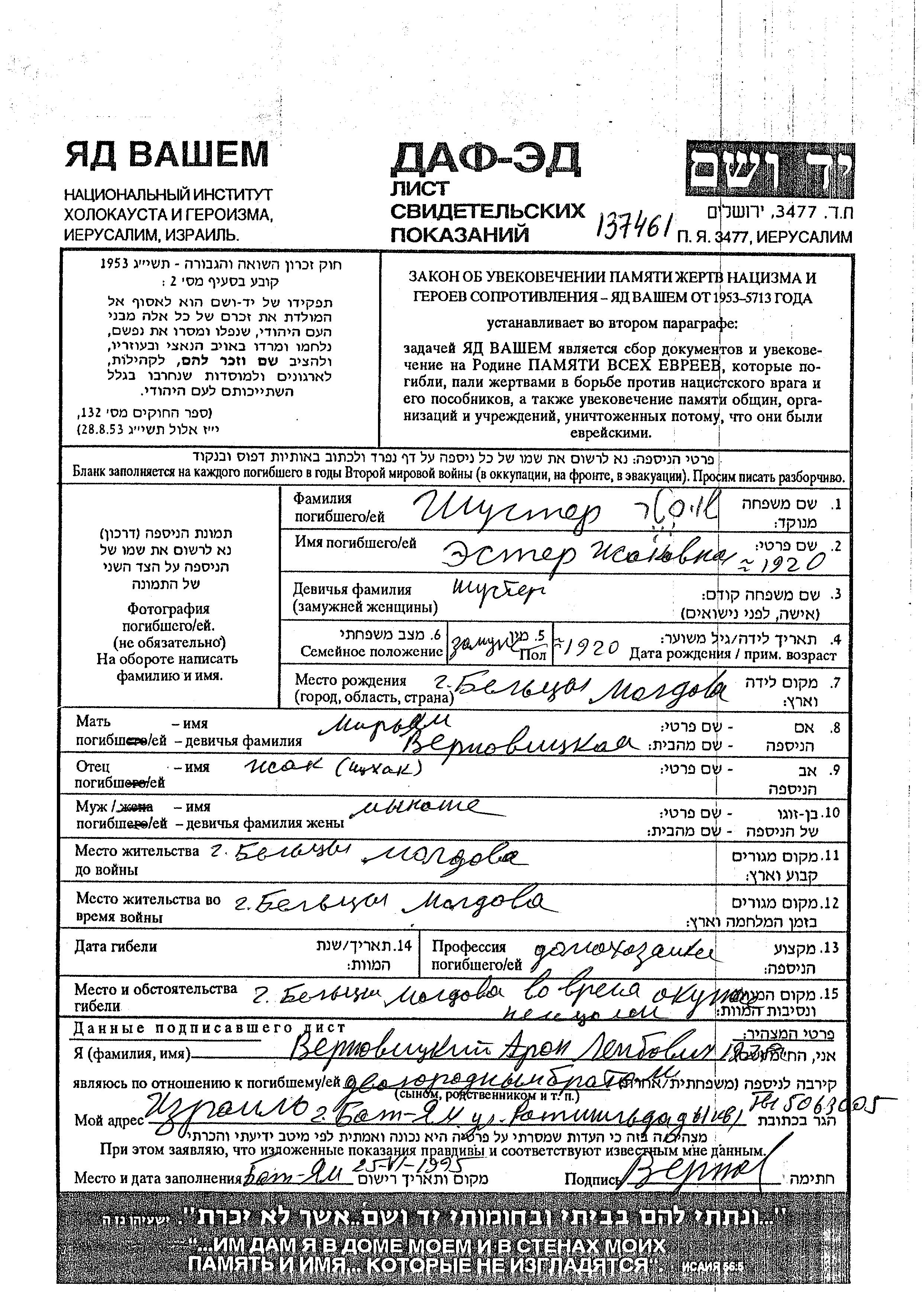 יד ושם - המפעל להנצחת השמות בדפי עד