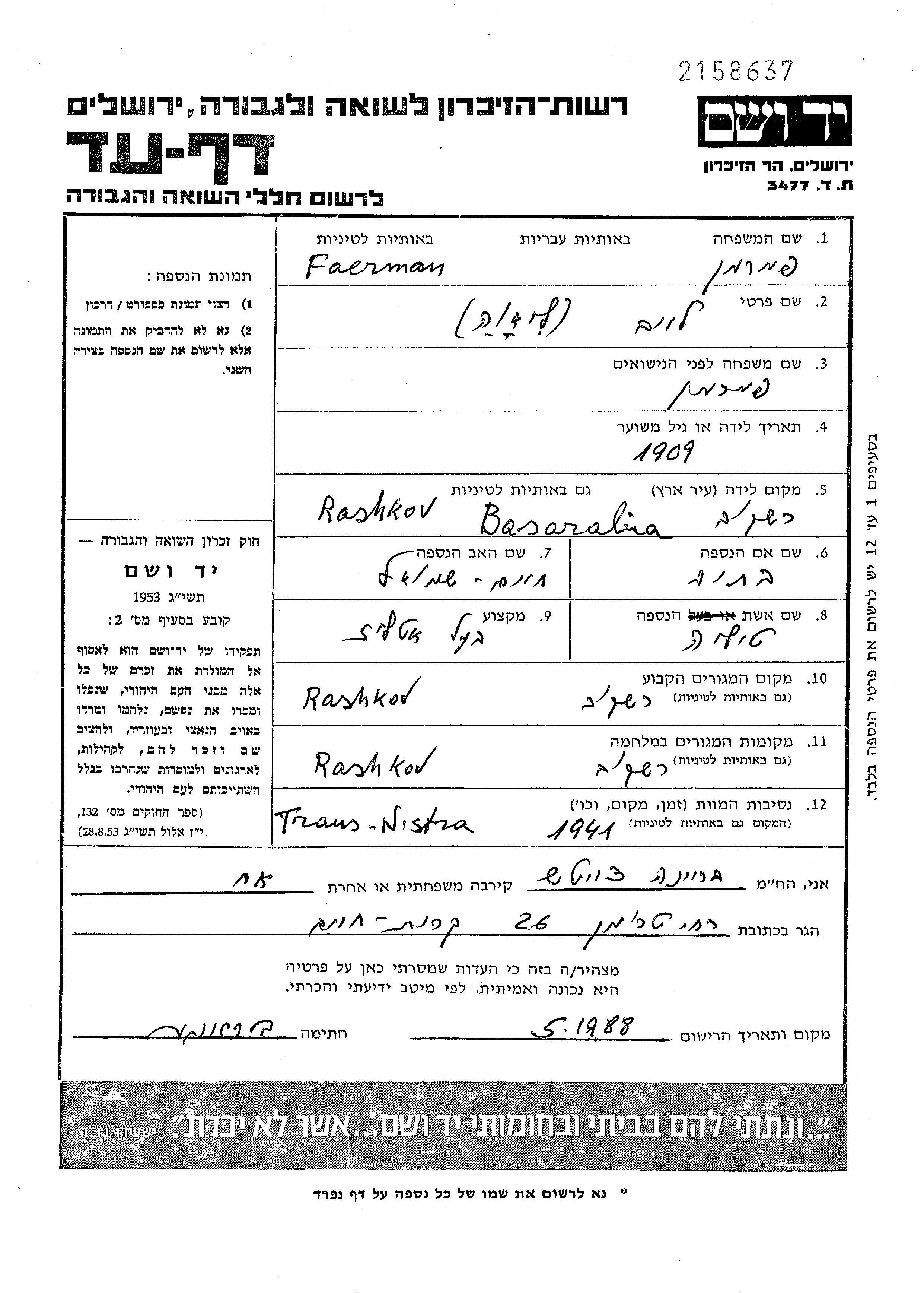 Faerman לייב ליובה 1909 Rashkov, רומניה דף-עד