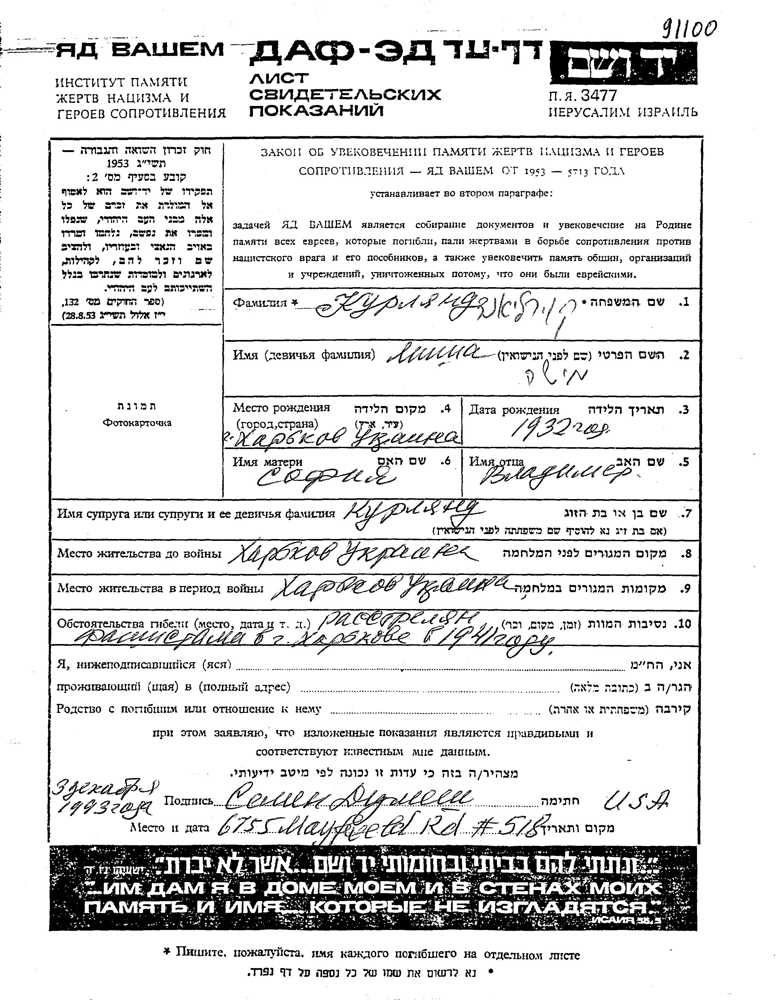 יד ושם - המפעל להנצחת השמות בדפי עד