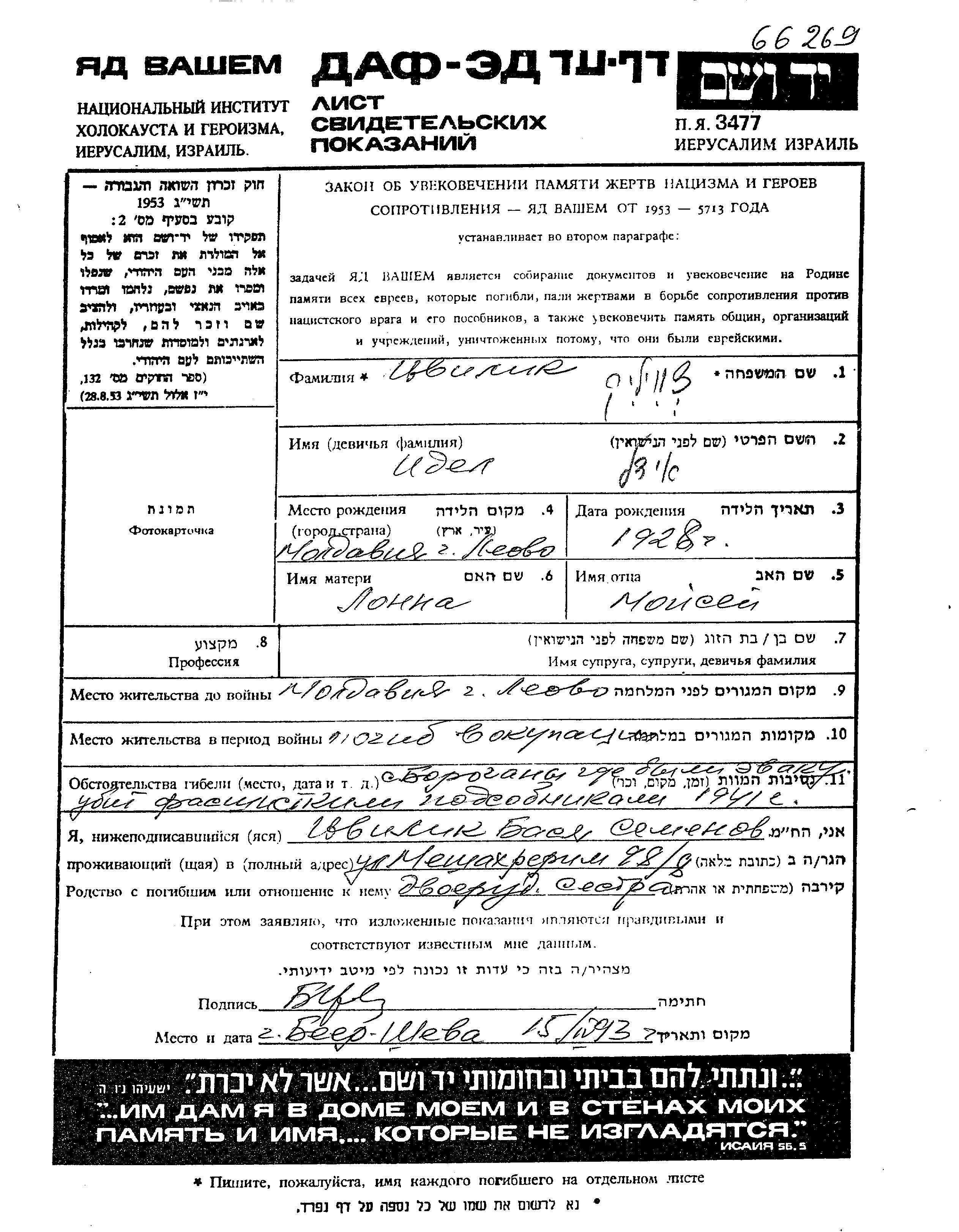 חיפוש שם מוסר דף העד. חיפוש לפי כל שם פרטי, כולל כינוי או שם חיבה