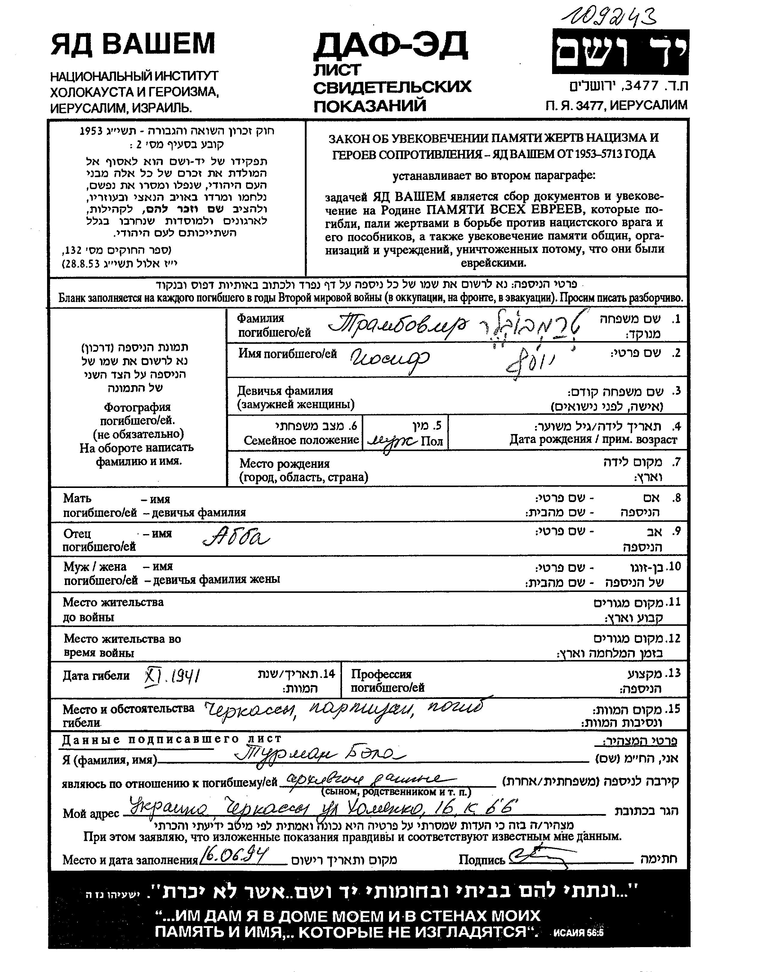 חיפוש שם מוסר דף העד. חיפוש לפי כל שם פרטי, כולל כינוי או שם חיבה