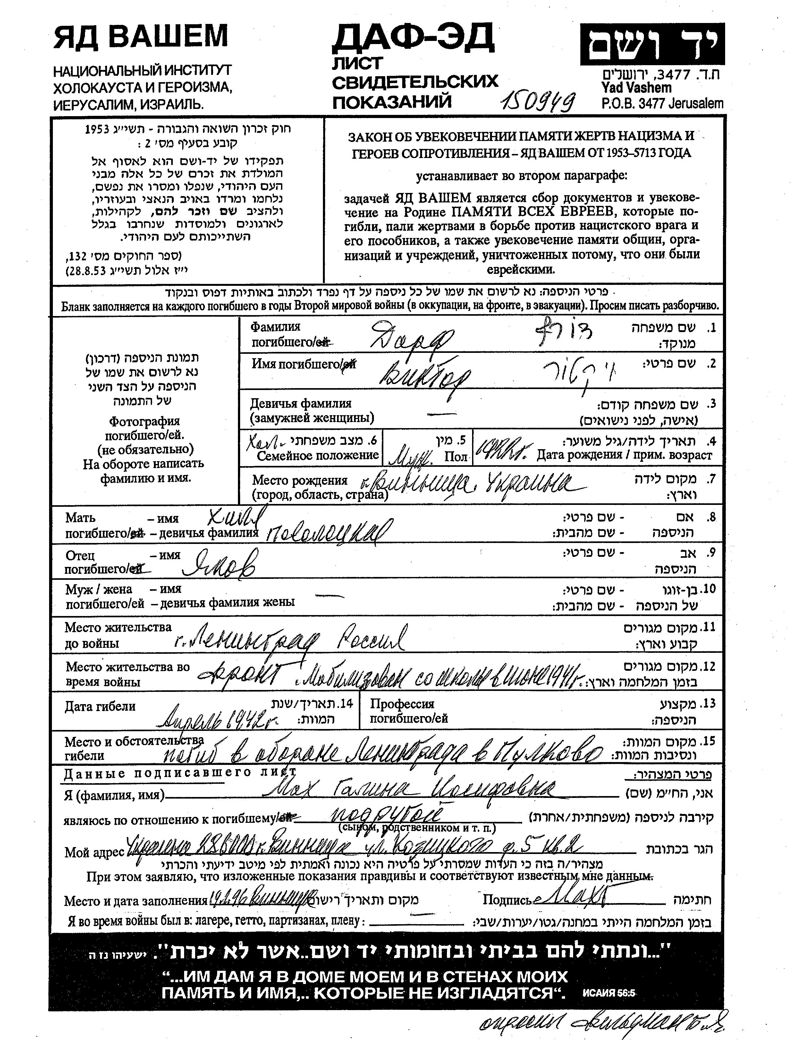 חיפוש שם מוסר דף העד. חיפוש לפי כל שם פרטי, כולל כינוי או שם חיבה