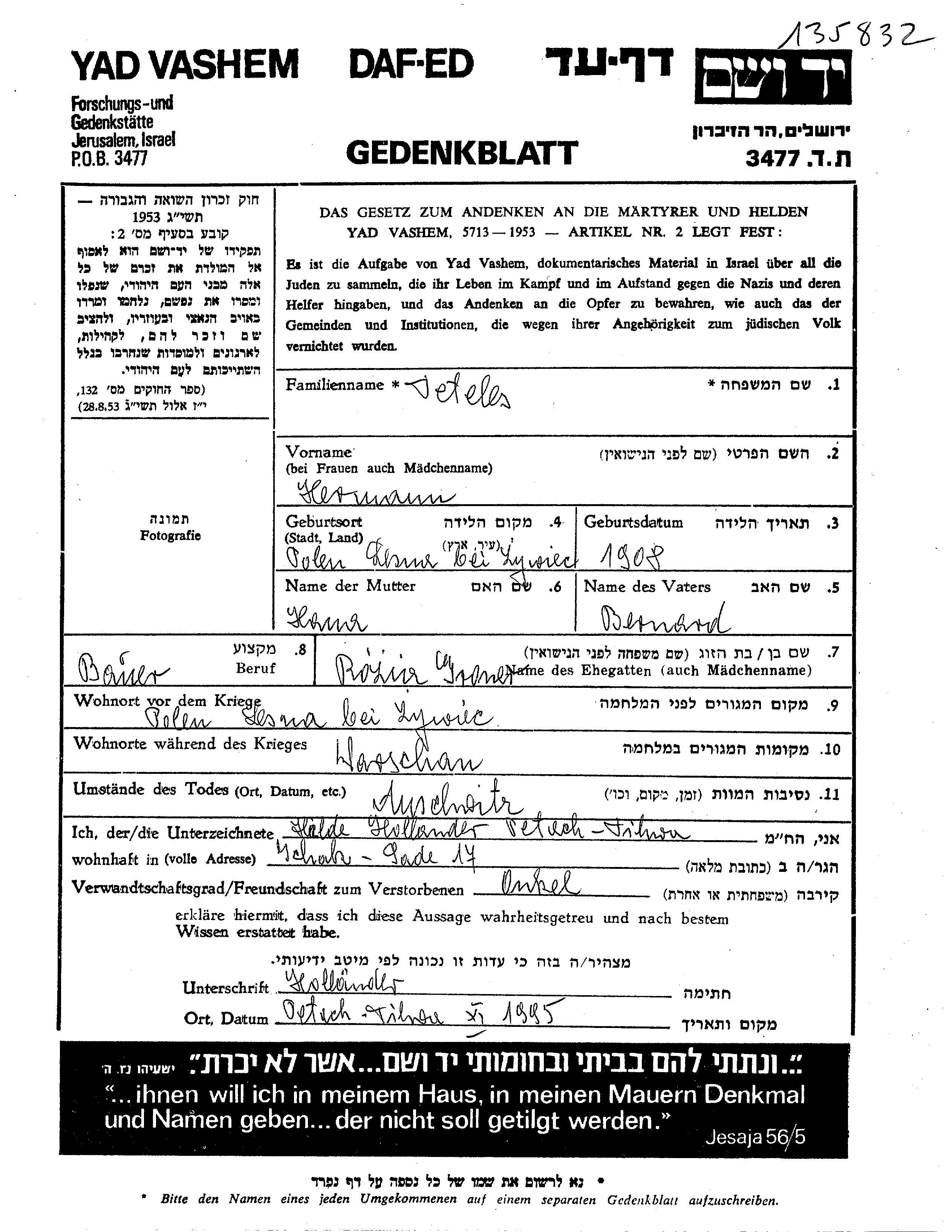 Hermann טטלס נולד בLesna שבפולין בשנת 1908 לברנרד ואילנה לבית Better בטר. הוא היה נשוי לRozia. לפני מלחמת העולם השניה התגורר בLesna שבפולין. בזמן המלחמה הוא היה בWarszawa שבפולין. הוא נרצח בשואה. מקום המוות: Auschwitz שבפולין.