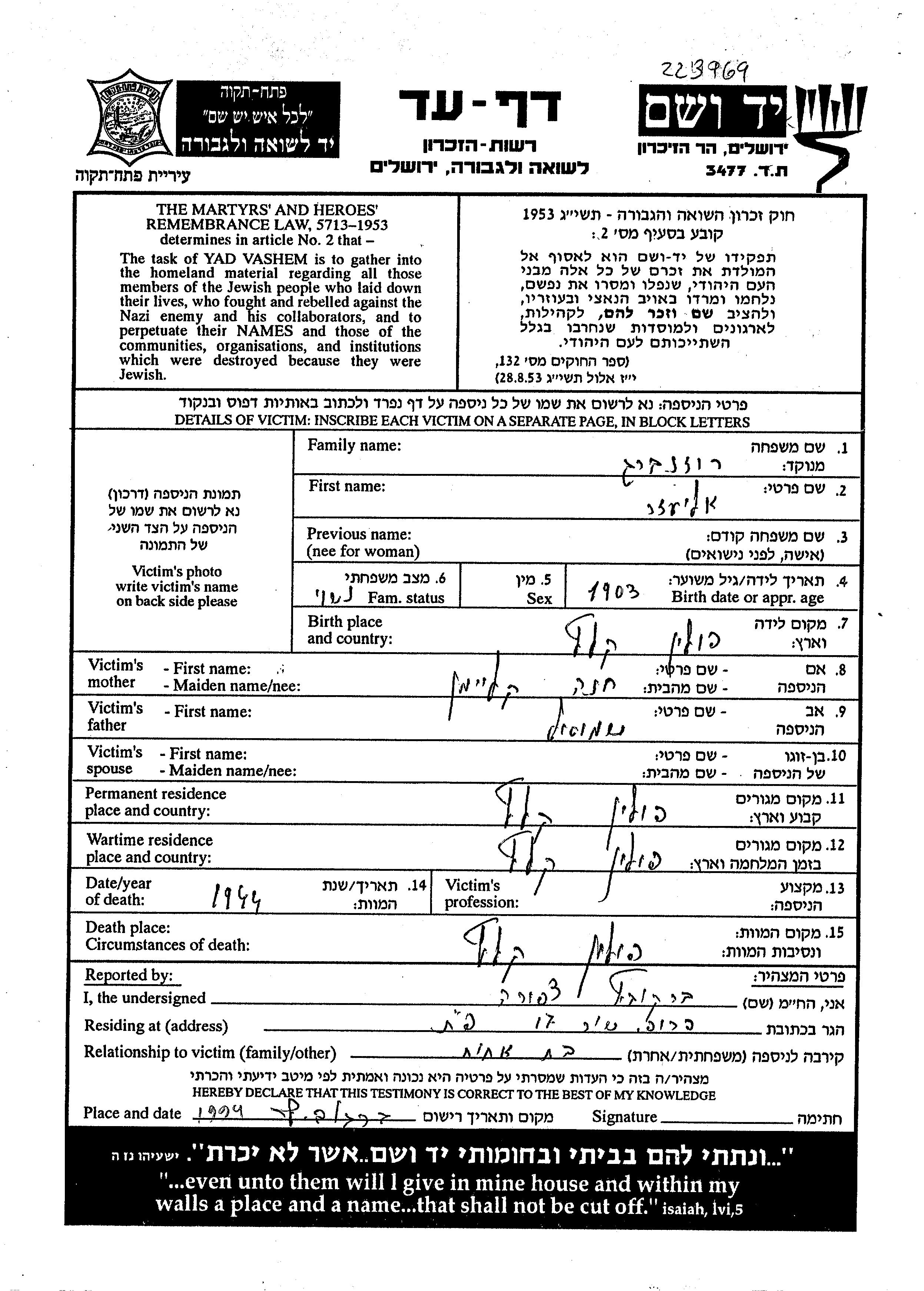 יד ושם - המפעל להנצחת השמות בדפי עד