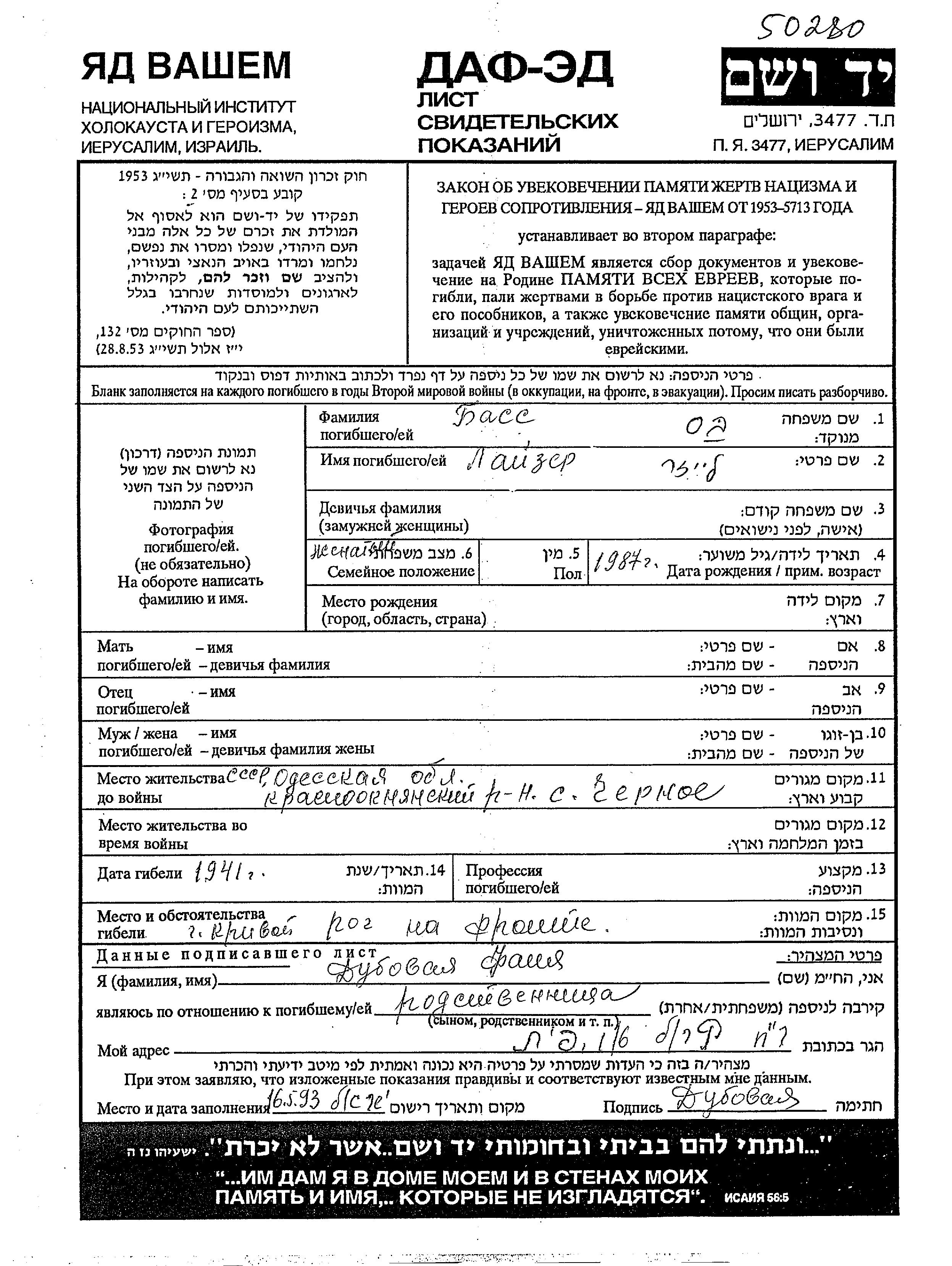 חיפוש שם מוסר דף העד. חיפוש לפי כל שם פרטי, כולל כינוי או שם חיבה