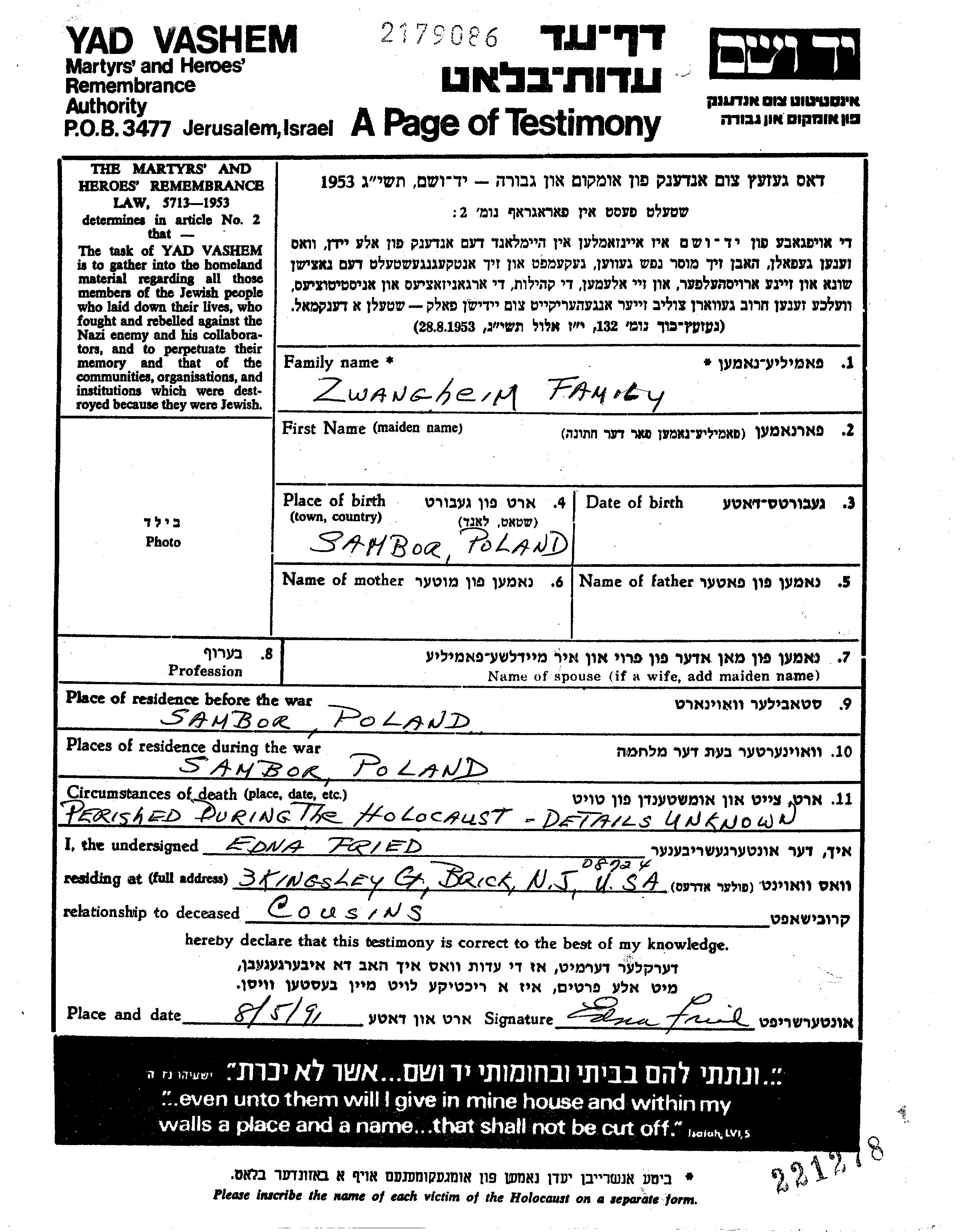 Zwangheim שם פרטי לא ידוע Sambor, פולין דף-עד