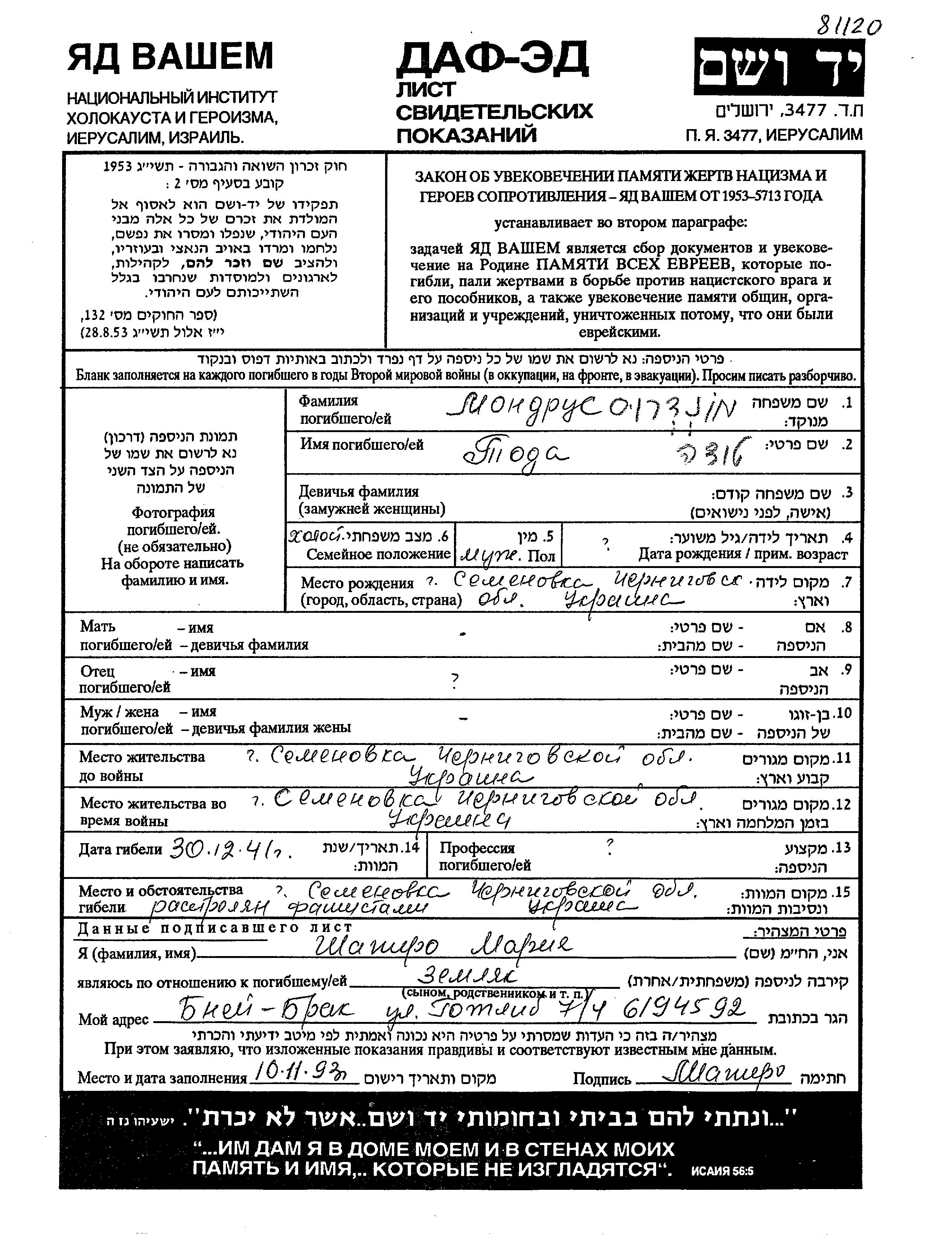 יד ושם - המפעל להנצחת השמות בדפי עד
