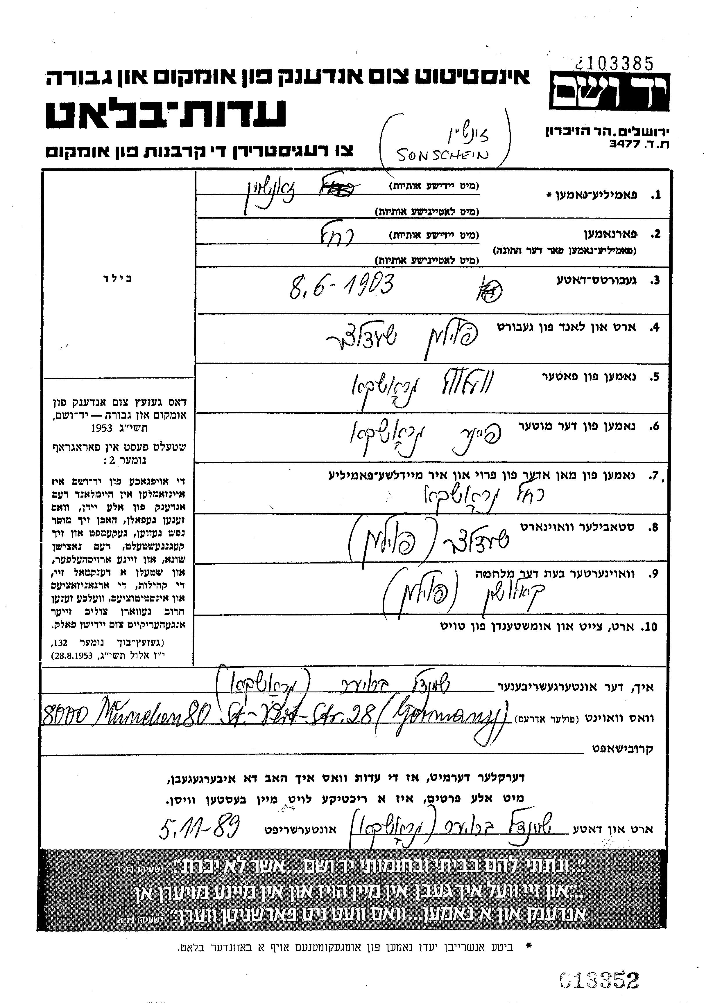 רחל Sonschein זונשיין לבית Groshka נולדה בSiedlce שבפולין בשנת 1903 לVelvl וFaine. לפני מלחמת העולם השניה התגוררה בSiedlce שבפולין. בזמן המלחמה היא היתה בKaluszyn שבפולין. רחל נרצחה בשואה.