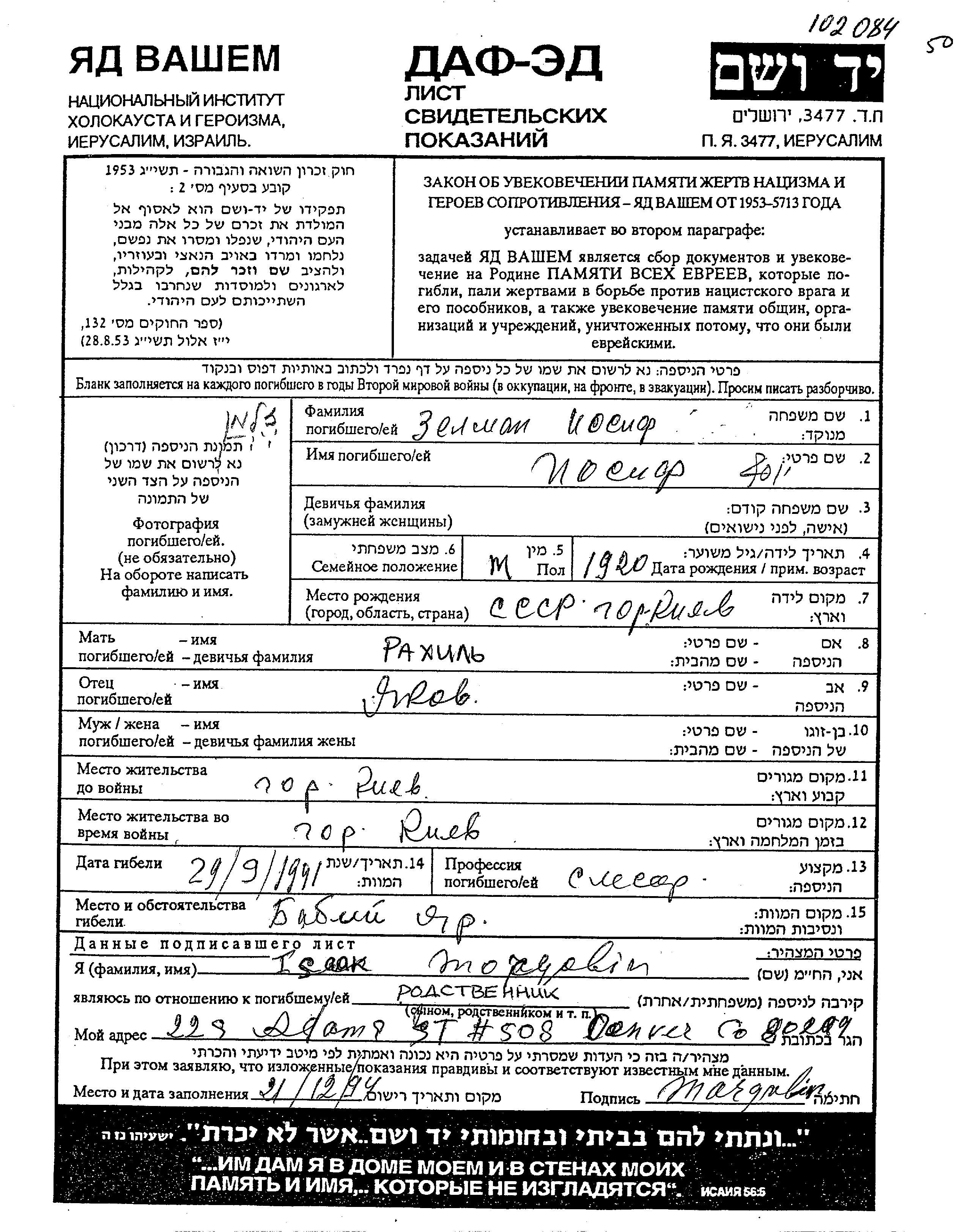 זלמן Iosif 1920 Kiyev, אוקראינה (ברה"מ) דף-עד