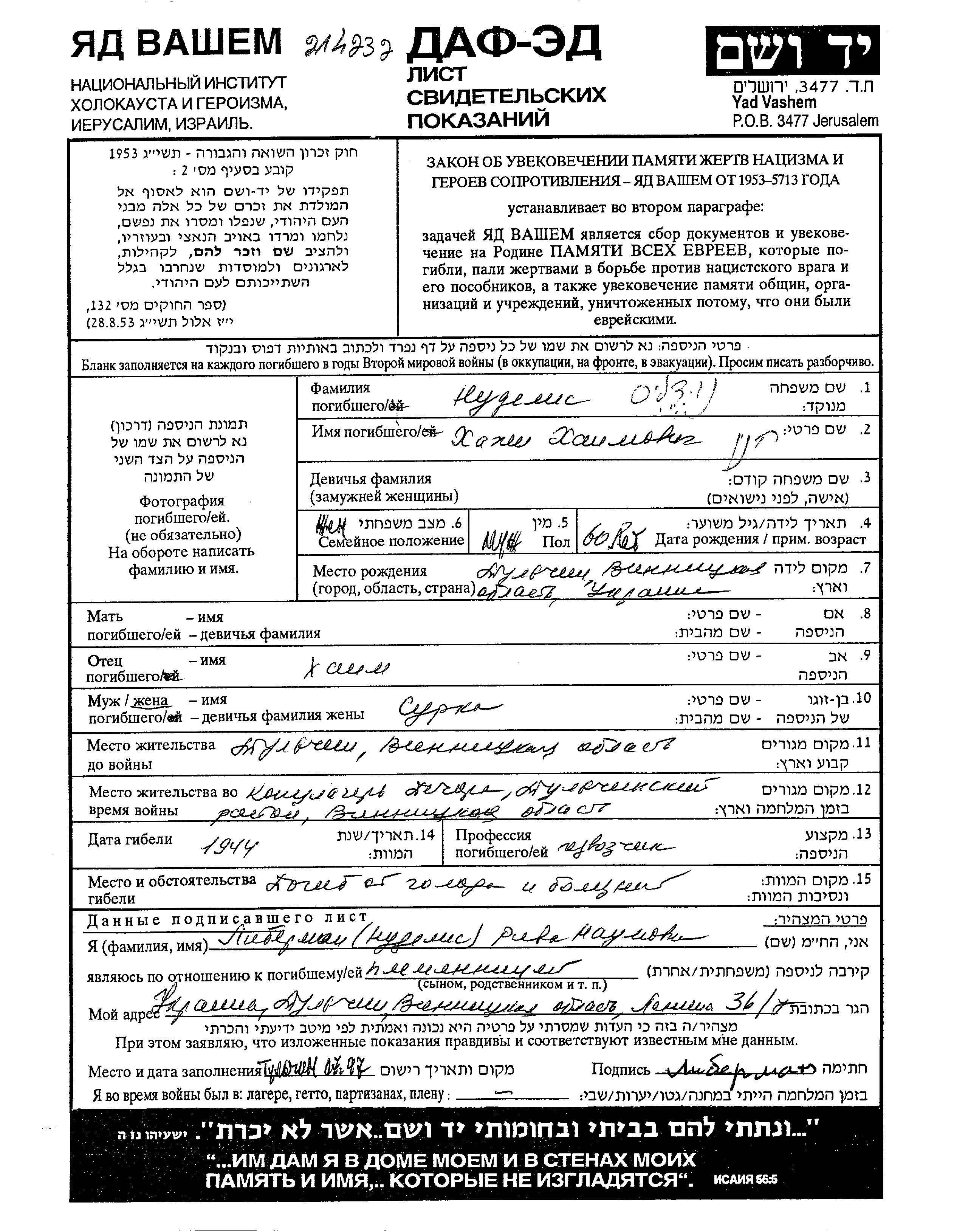 יד ושם - המפעל להנצחת השמות בדפי עד