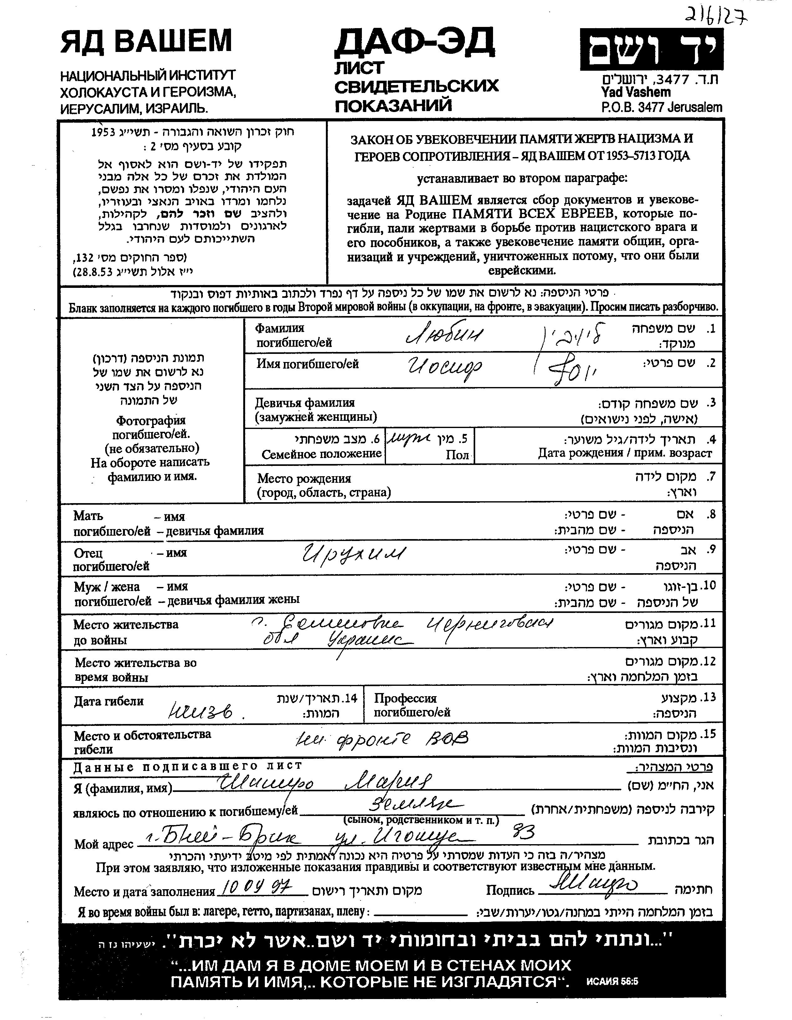 חיפוש שם מוסר דף העד. חיפוש לפי כל שם פרטי, כולל כינוי או שם חיבה