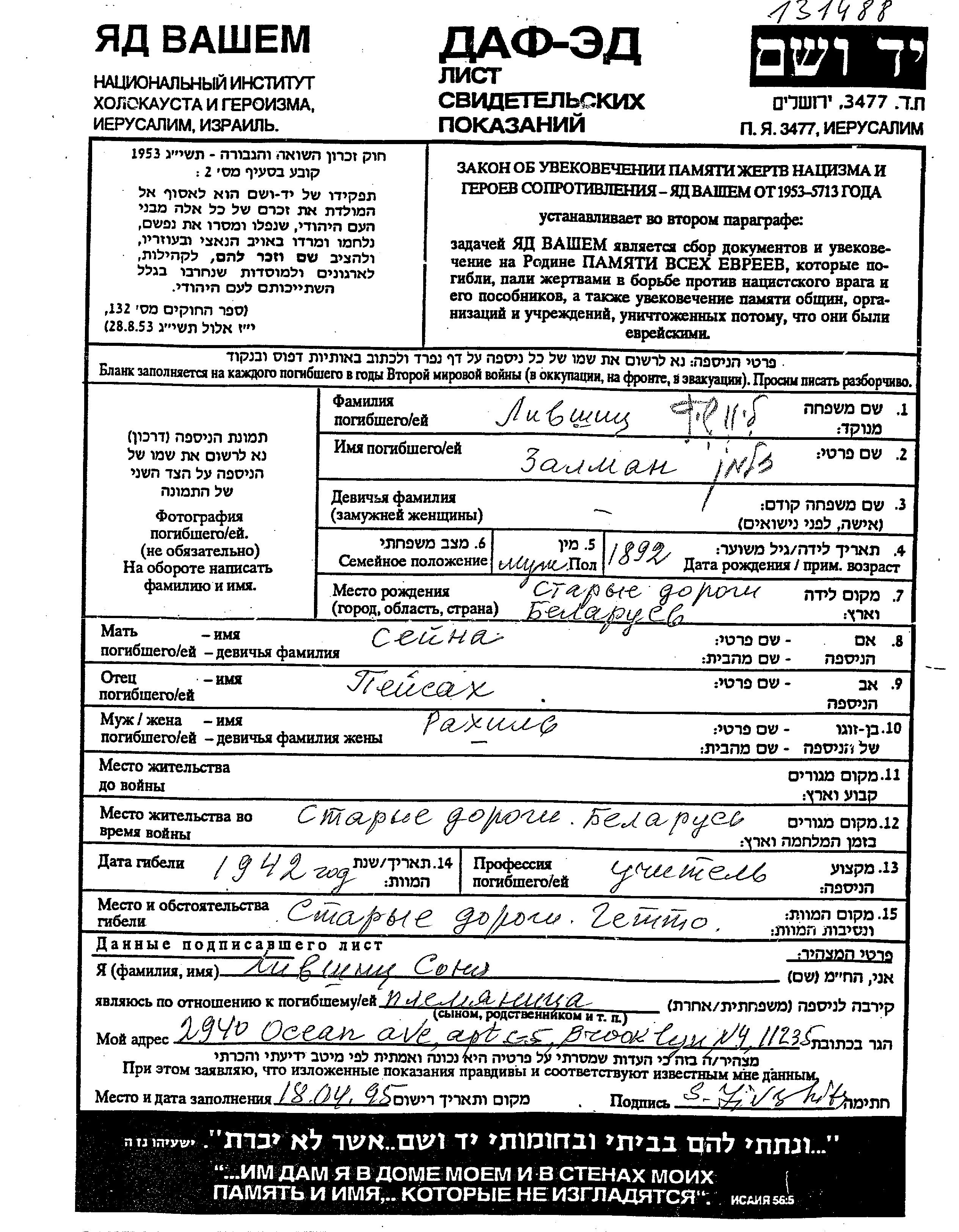ליוושיץ זלמן 1892 Staryye Dorogi, ביאלורוסיה (ברה"מ) דף-עד