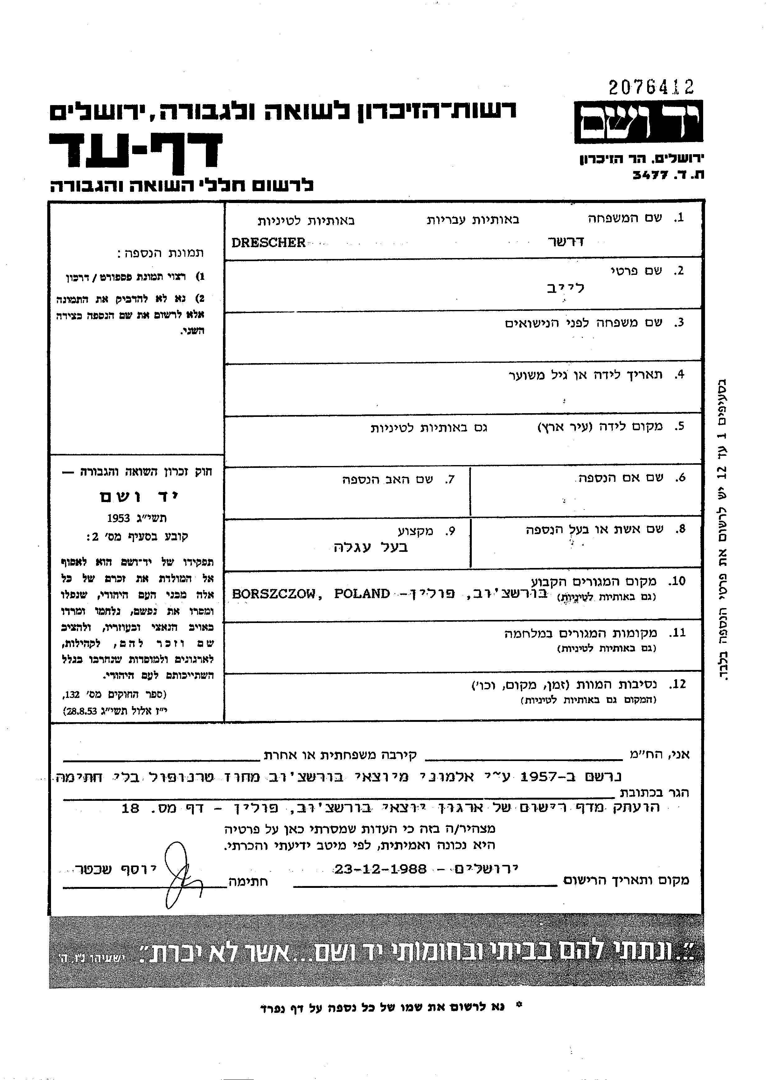 Drescher לייב Borszczow, פולין דף-עד
