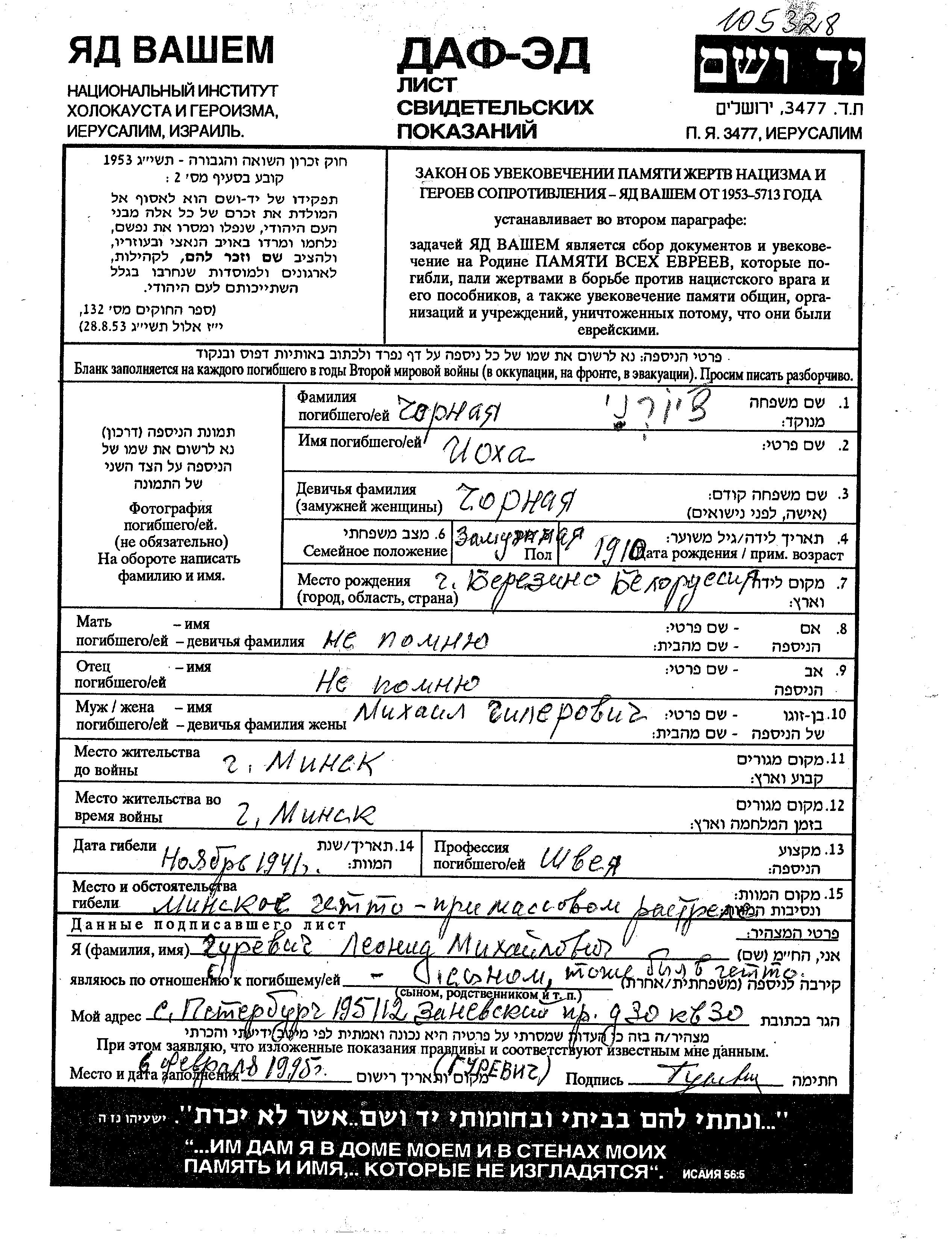 יד ושם - המפעל להנצחת השמות בדפי עד